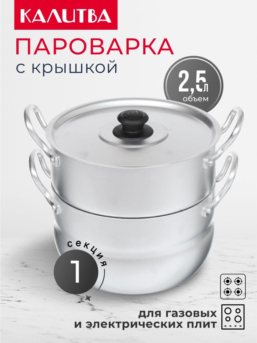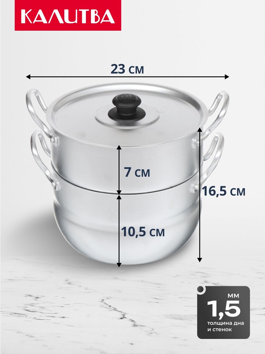 Кастрюля-пароварка "Калитва" изготовлена из качественного алюминия. Состоит из 2 уровней: нижней кастрюли и кастрюли с отверстиями в основании. Такая пароварка идеально подходит для приготовления и разогрева продуктов на пару: блюда быстро разогреваются, а материал хорошо сохраняет тепло. Такой способ приготовления продуктов сохраняет в них полезные витамины и минералы. Кастрюля оснащена удобными ручками и крышкой. Подходит для газовых и электрических плит.