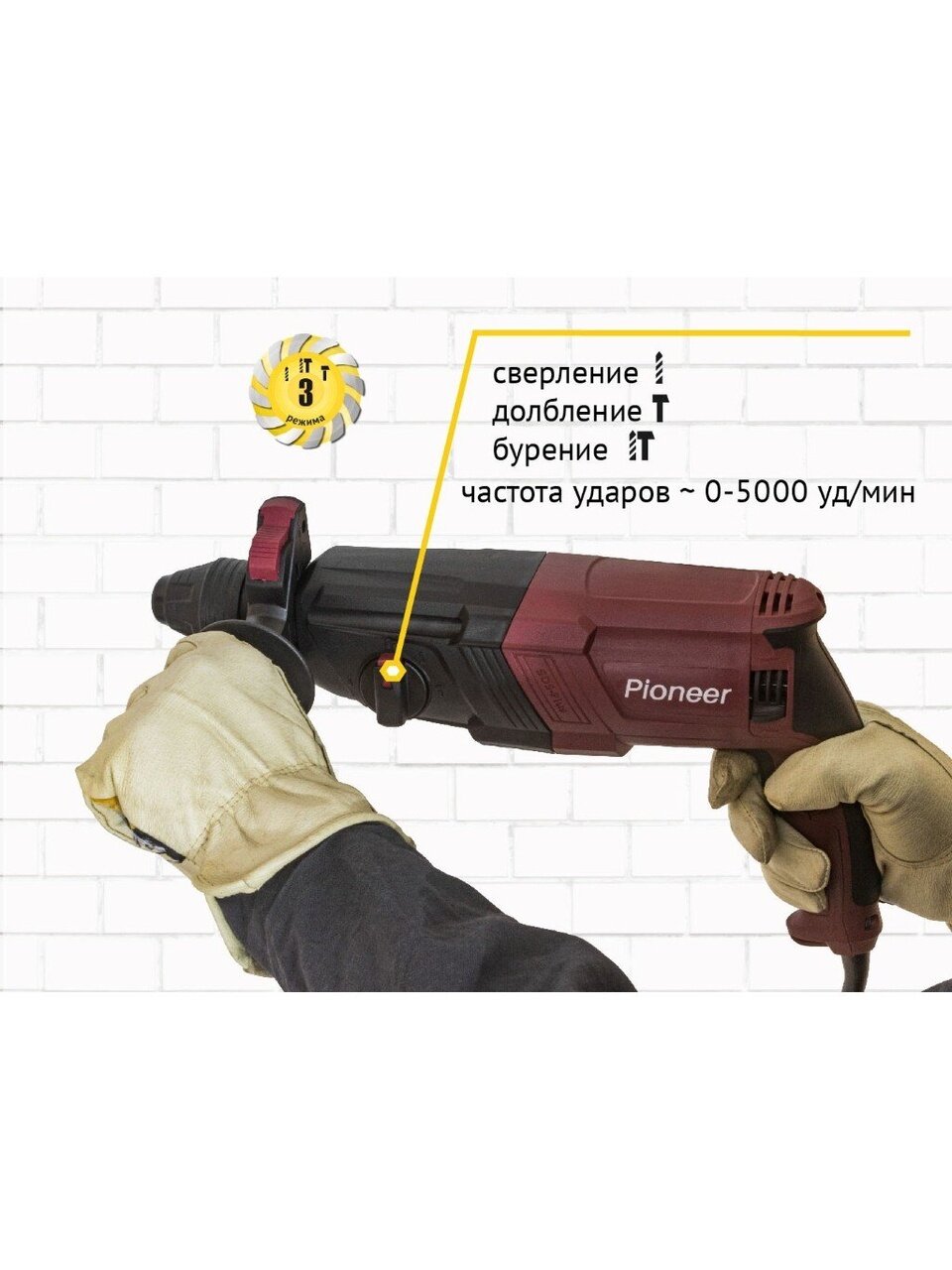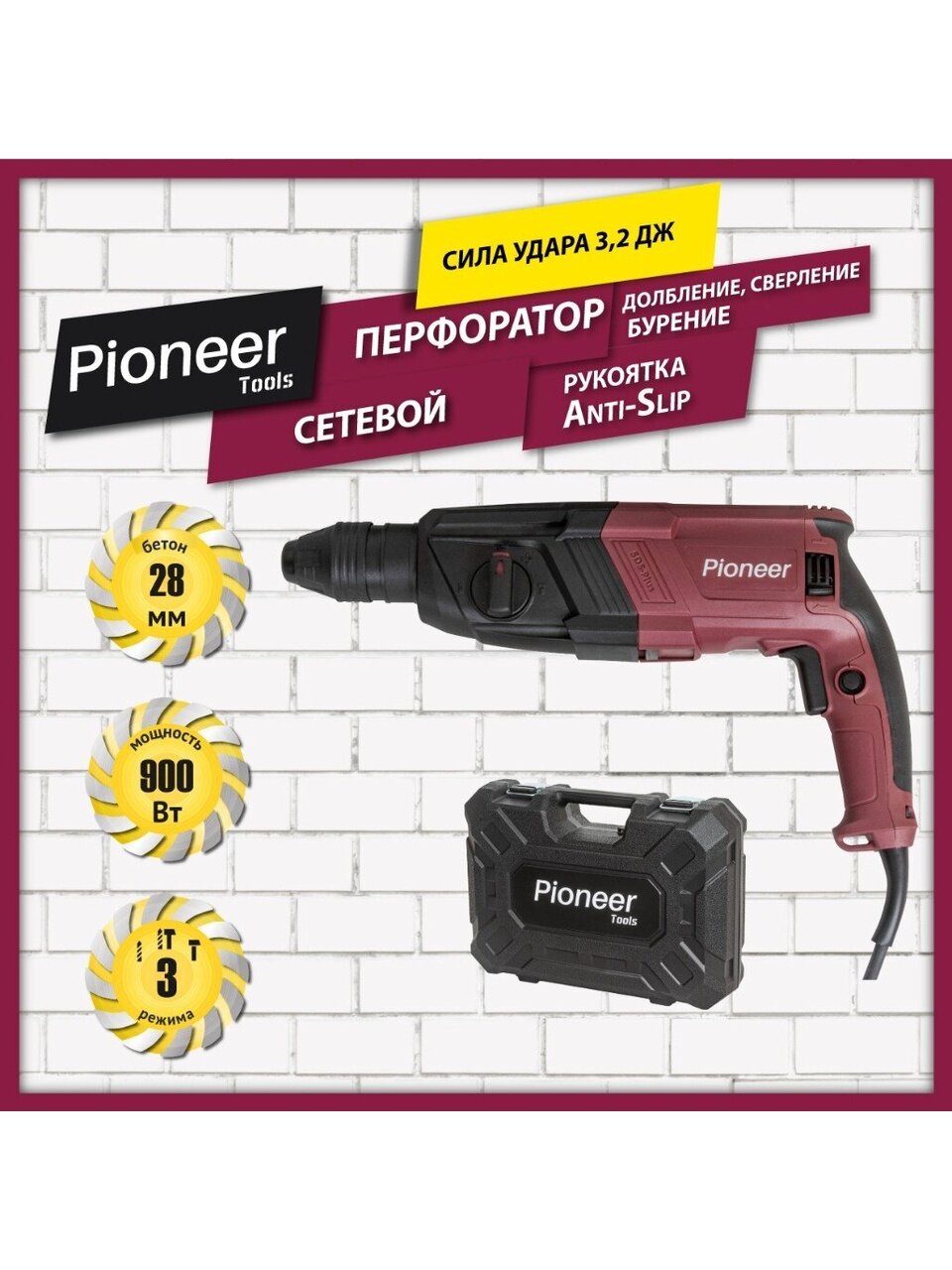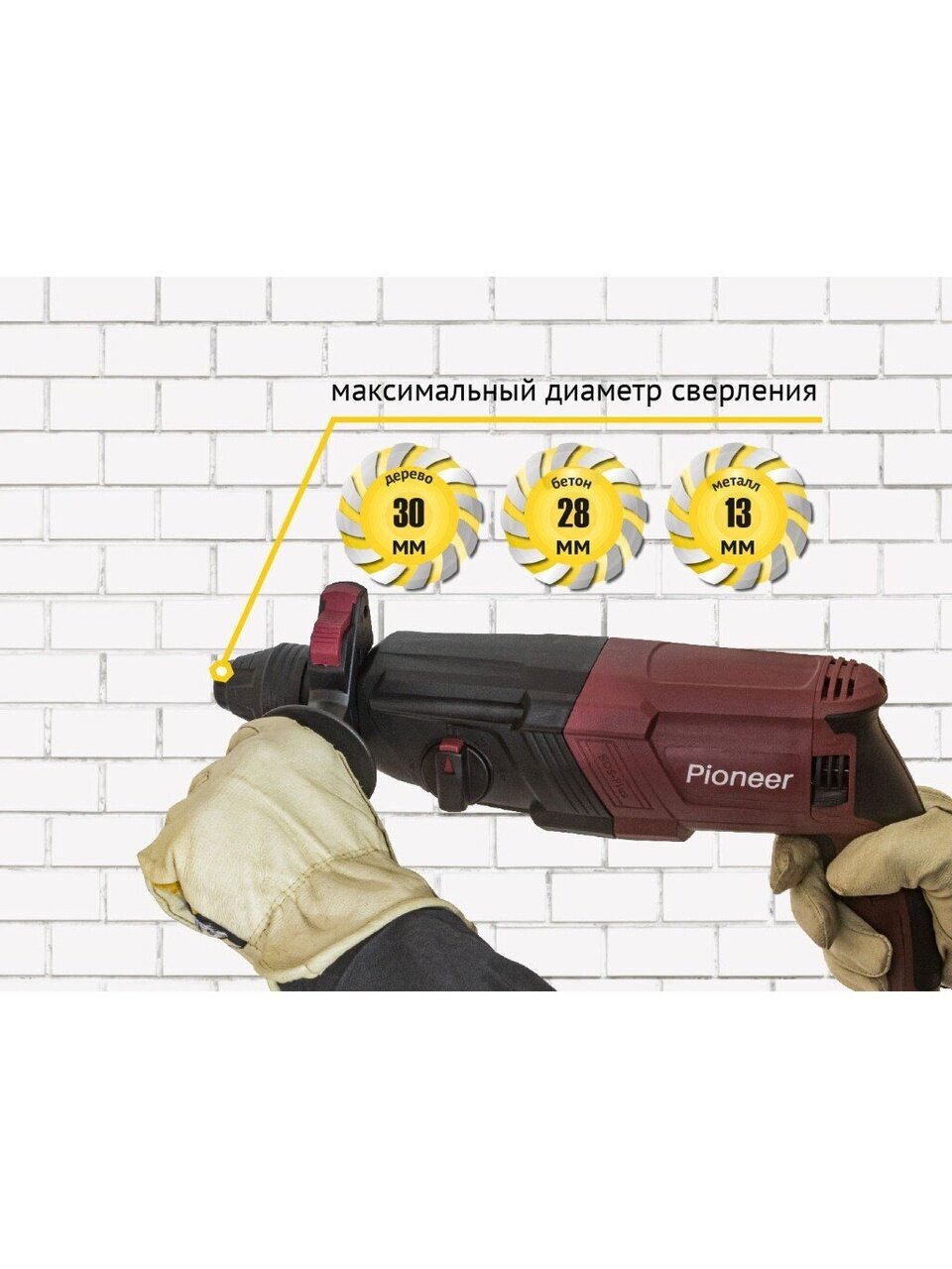 Перфоратор Pioneer RH-M900-01C подходит для сверления и создания отверстий в кирпиче, бетоне и камне.
