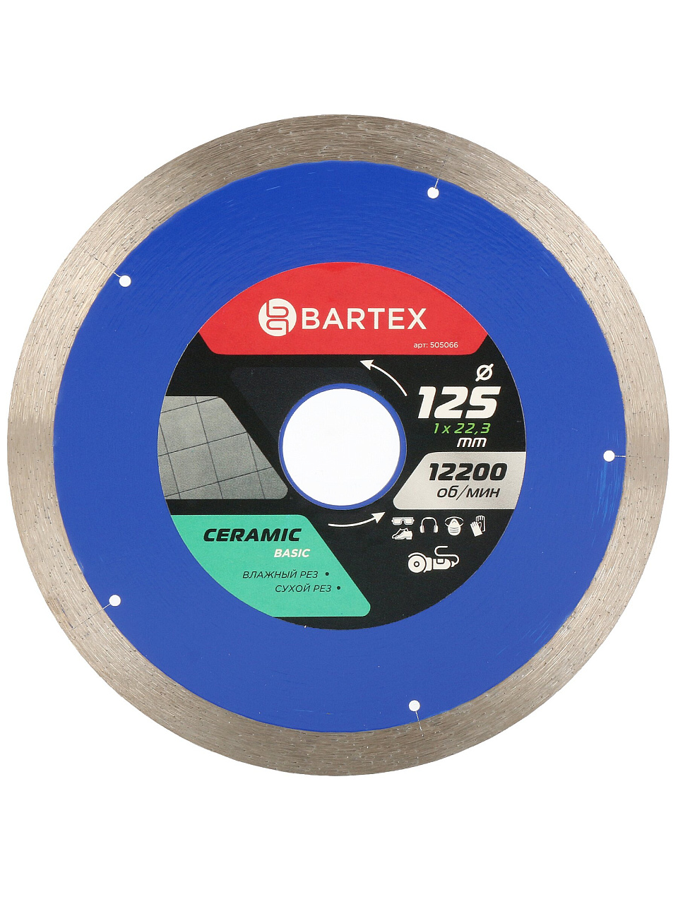 Диск алмазный Bartex 125 мм для керамики: чистый рез без сколов, универсальный для сухого и влажного использования. Идеален для ремонта и отделки.