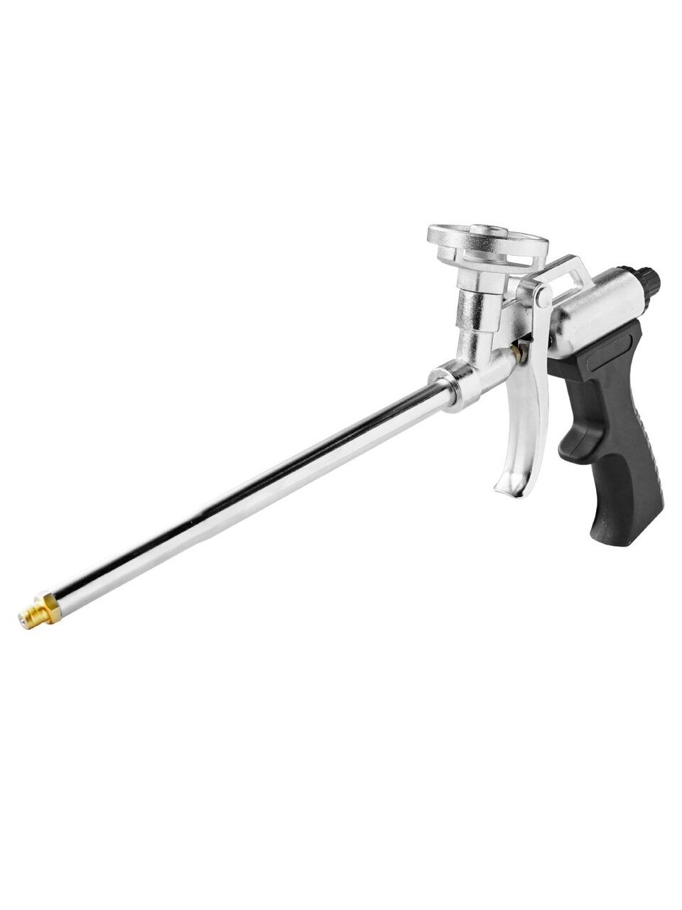 Пистолет для монтажной пены Fomeron Hit обладает прочным металлическим корпусом. Регулятор напора пены расположен с тыльной стороны корпуса пистолета, что позволяет легко и точно регулировать количество выпускаемого содержимого.