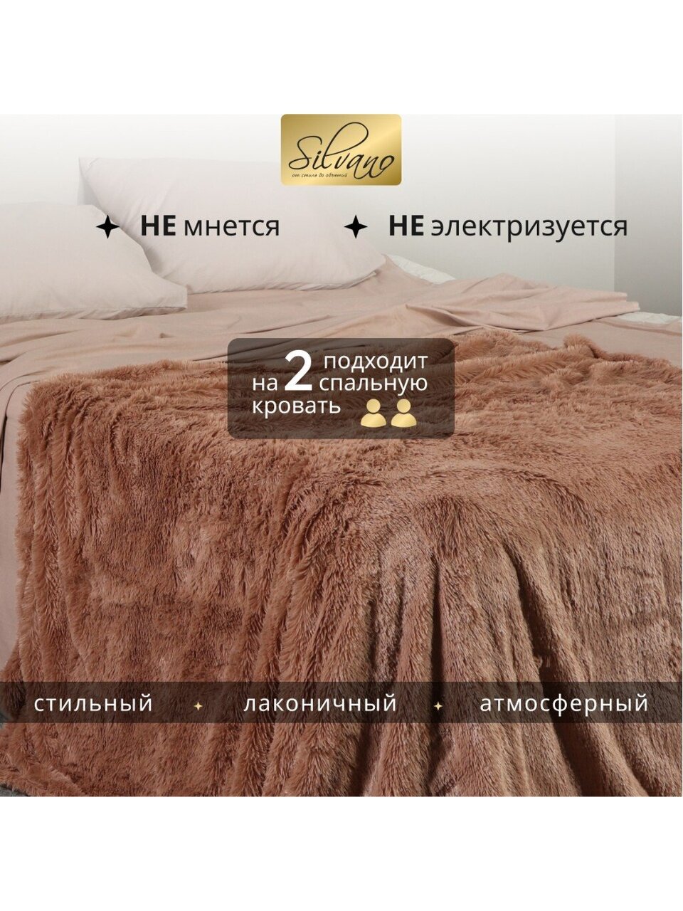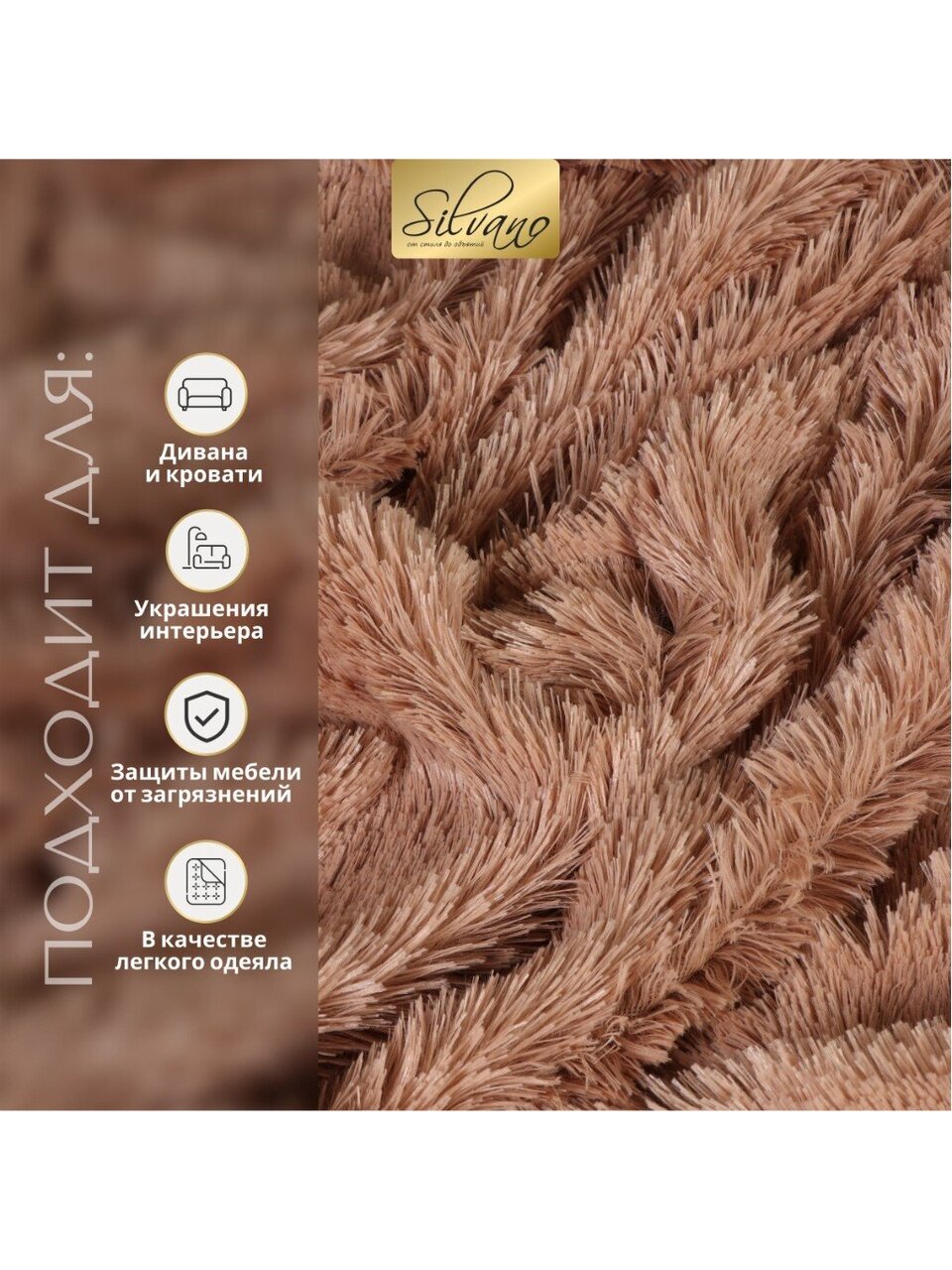 - Премиум-эффект: длинный ворс искусственного меха создает ощущение роскоши и уюта, выделяя плед среди аналогов