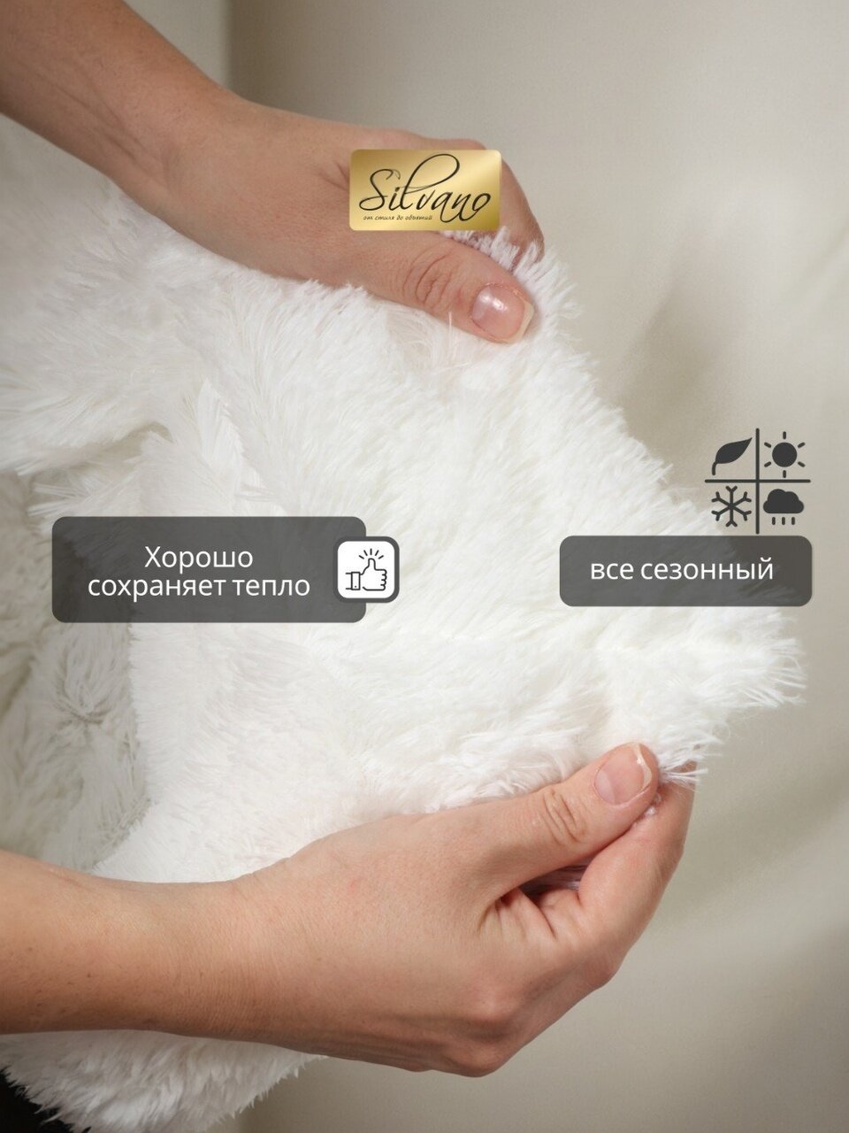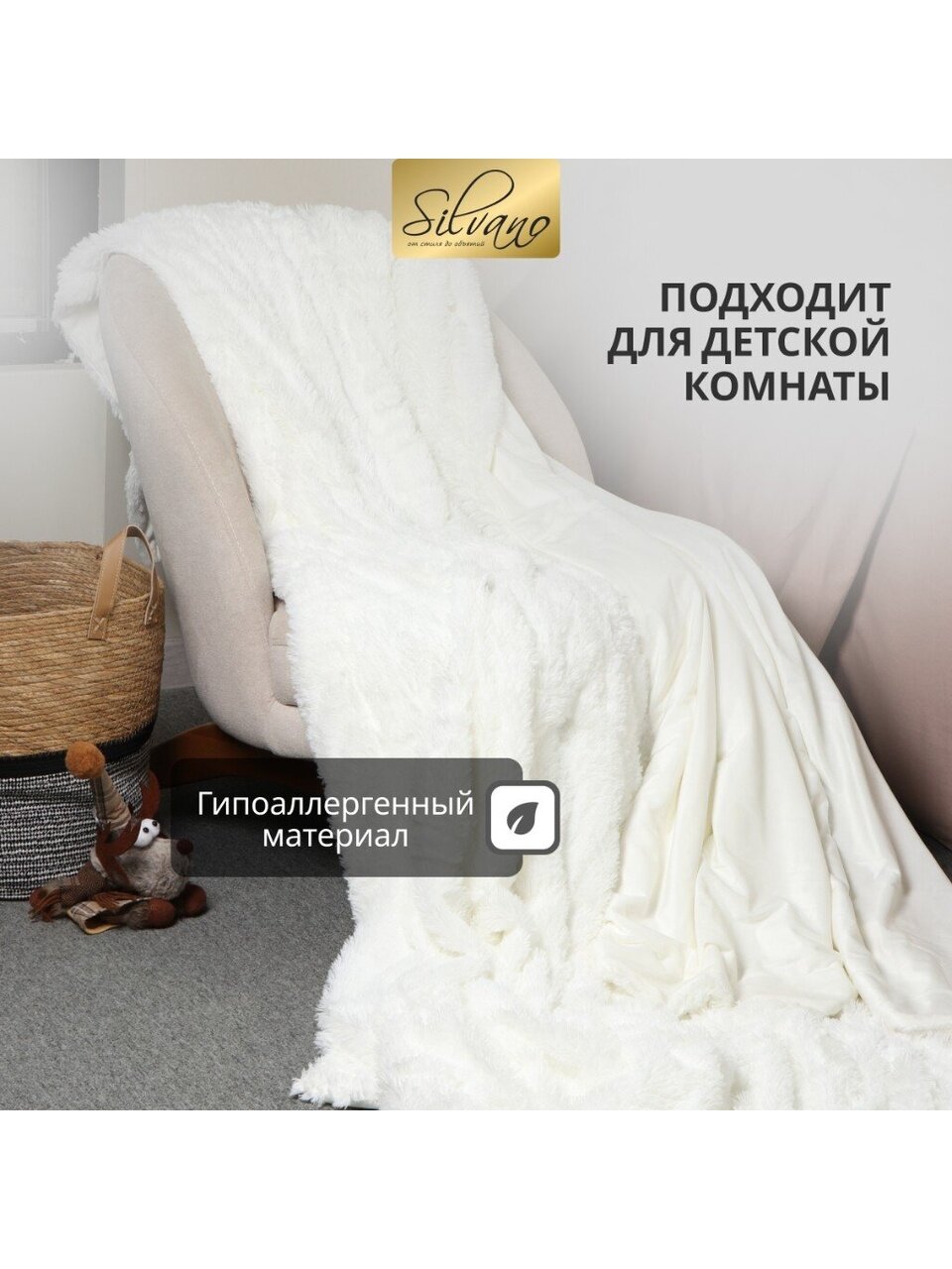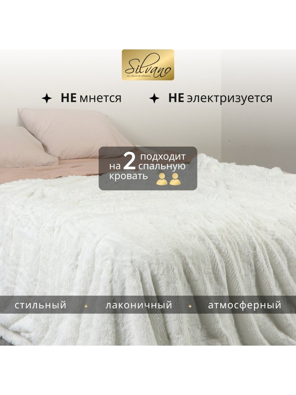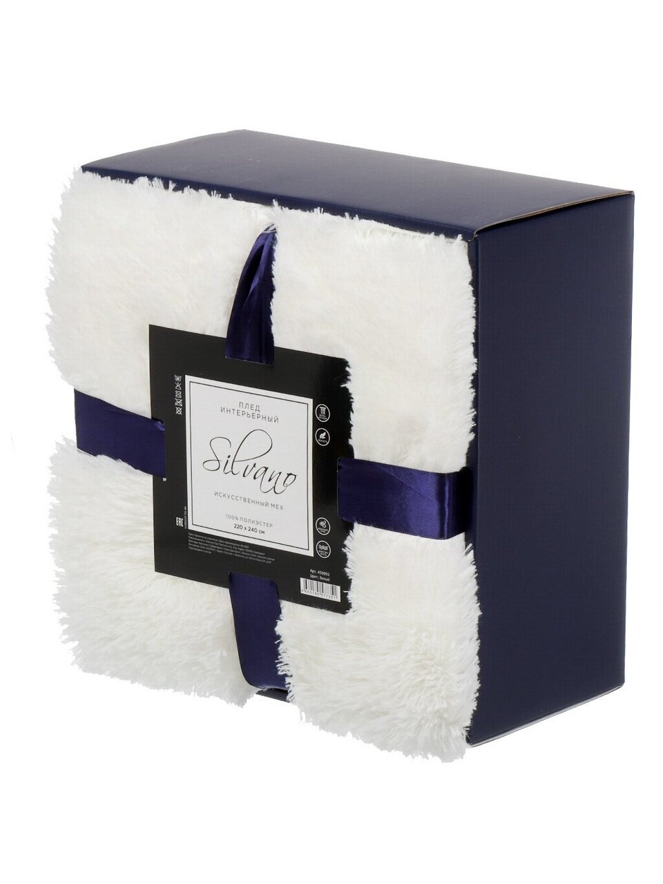 Плед евро 220х240 см Silvano из искусственного меха: уют, стиль и тепло для спальни и гостиной. Пушистый белый, легко стирается, не скатывается.