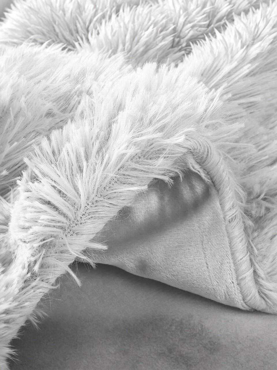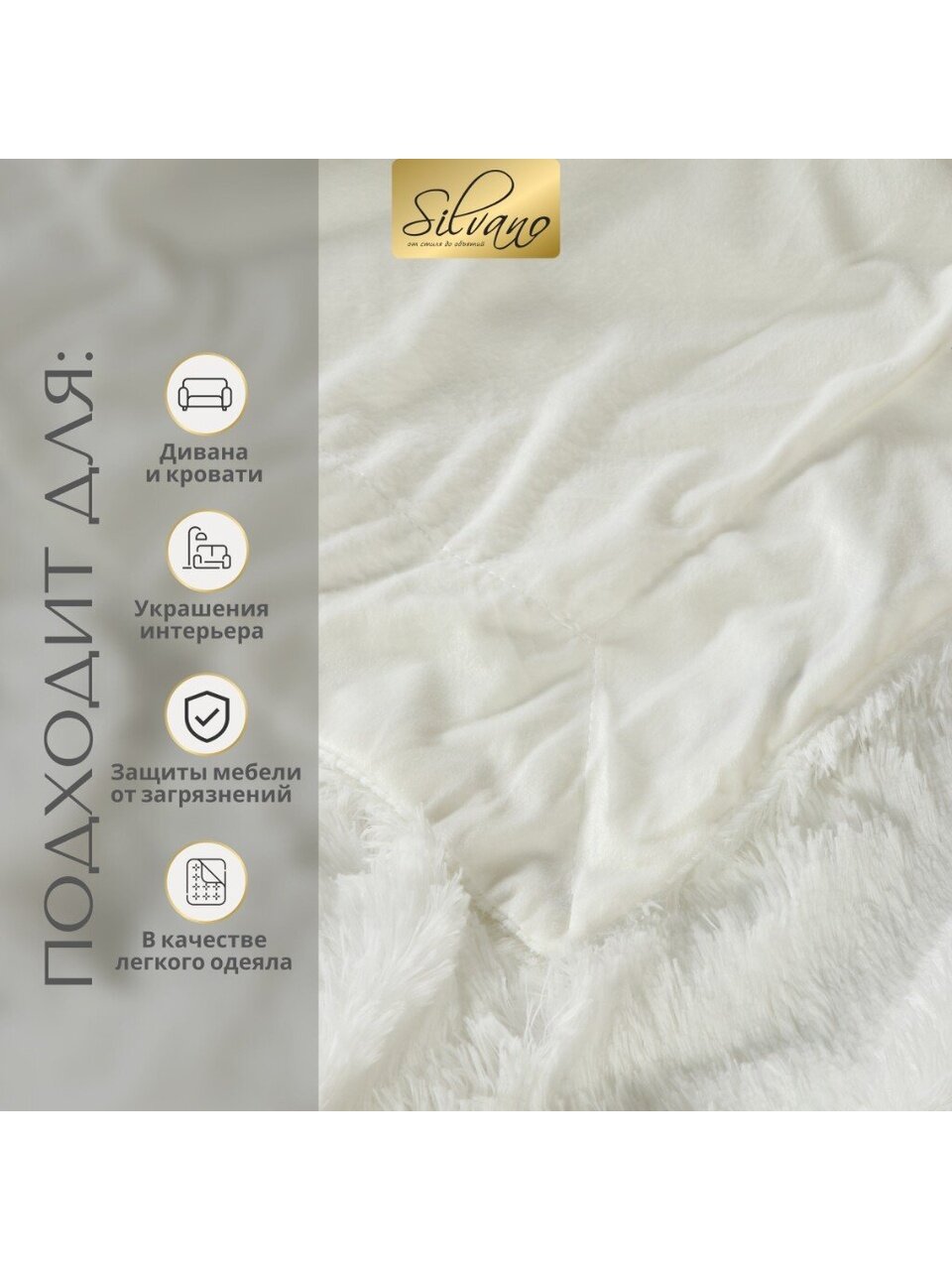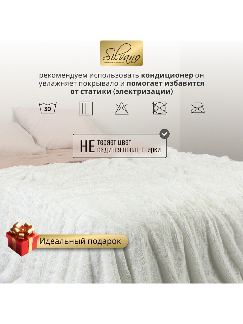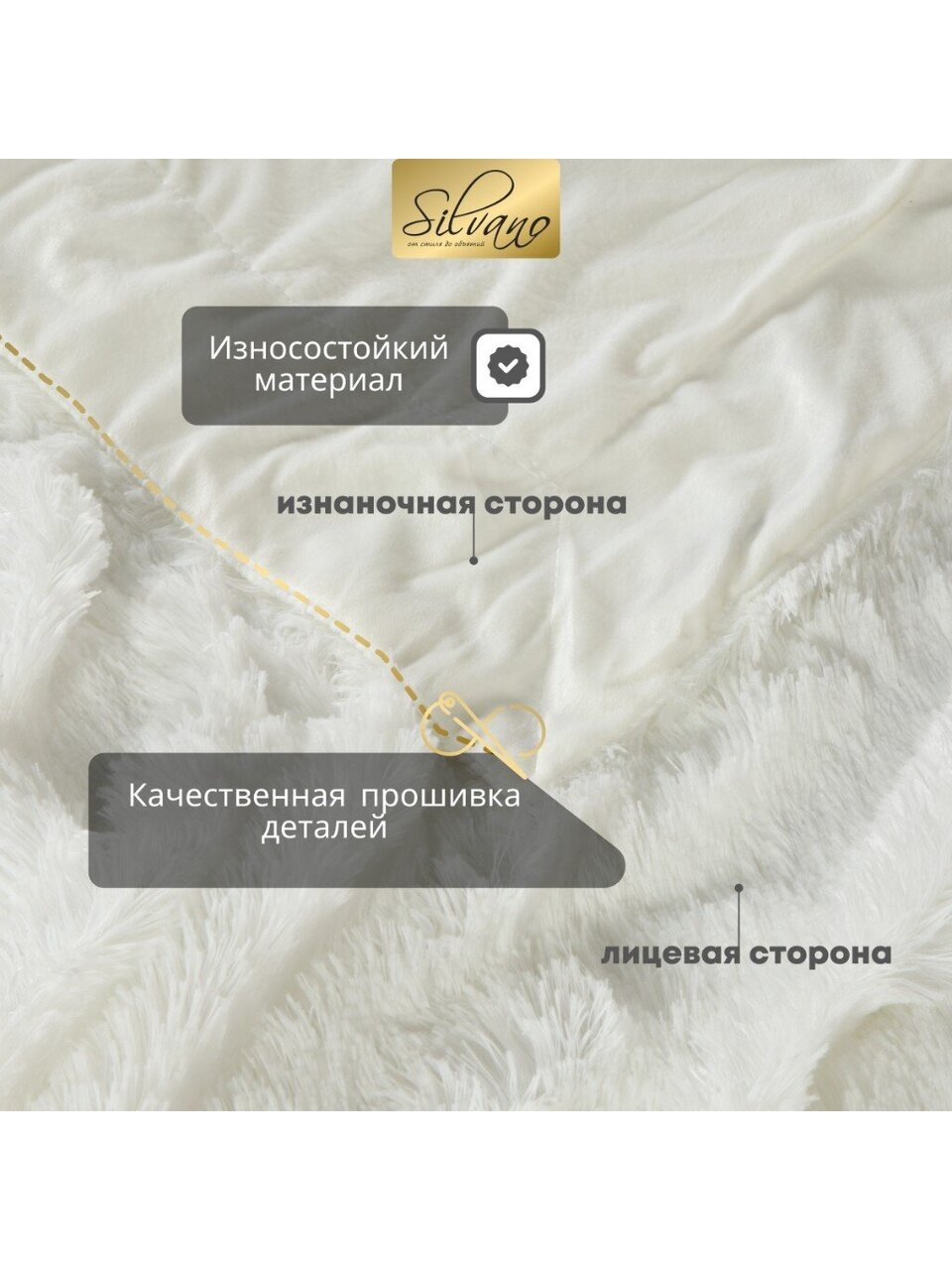 Плед евро 220х240 см Silvano из искусственного меха: уют, стиль и тепло для спальни и гостиной. Пушистый белый, легко стирается, не скатывается.