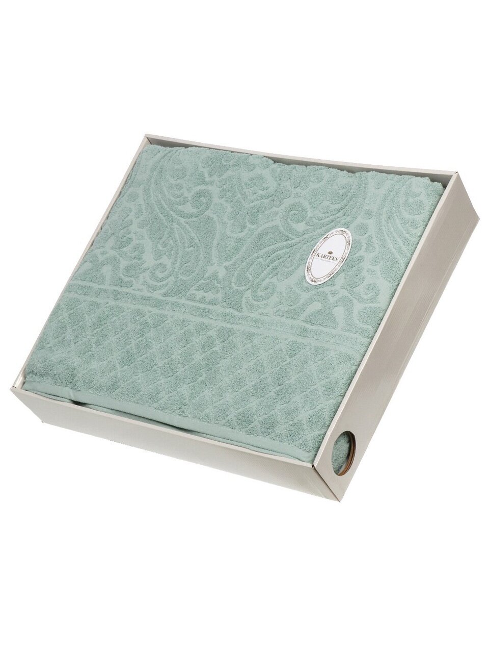 Плед евро 220х240 см Karteks Damask 16: премиальный жаккардовый хлопок в подарочной коробке — комфорт, стиль и универсальность для дома и подарка