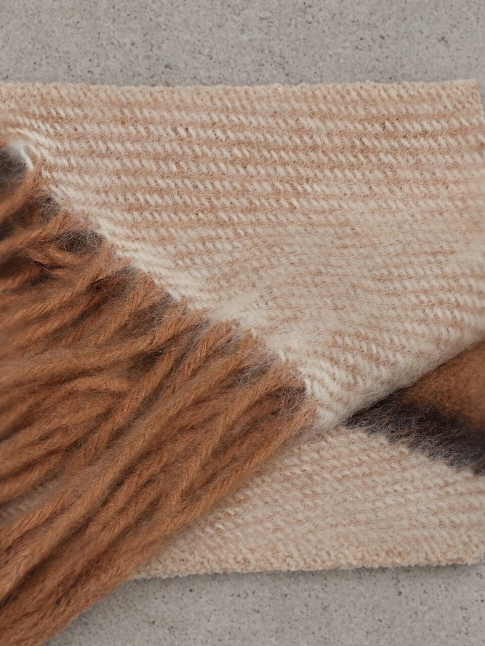 Плед состоит из 70% новозеландской шерсти и 30% полиэстера. В отличие от синтетических моделей, он лучше сохраняет тепло, приятнее на ощупь и не электризуется.
