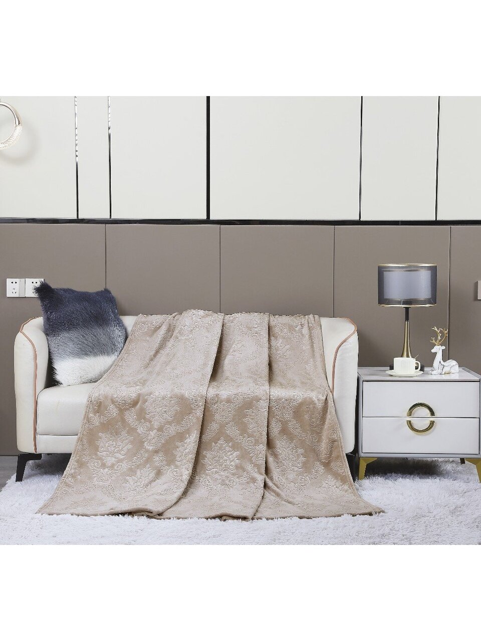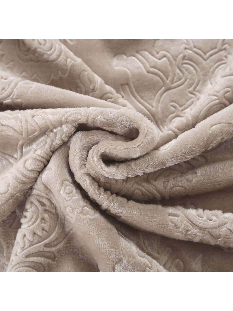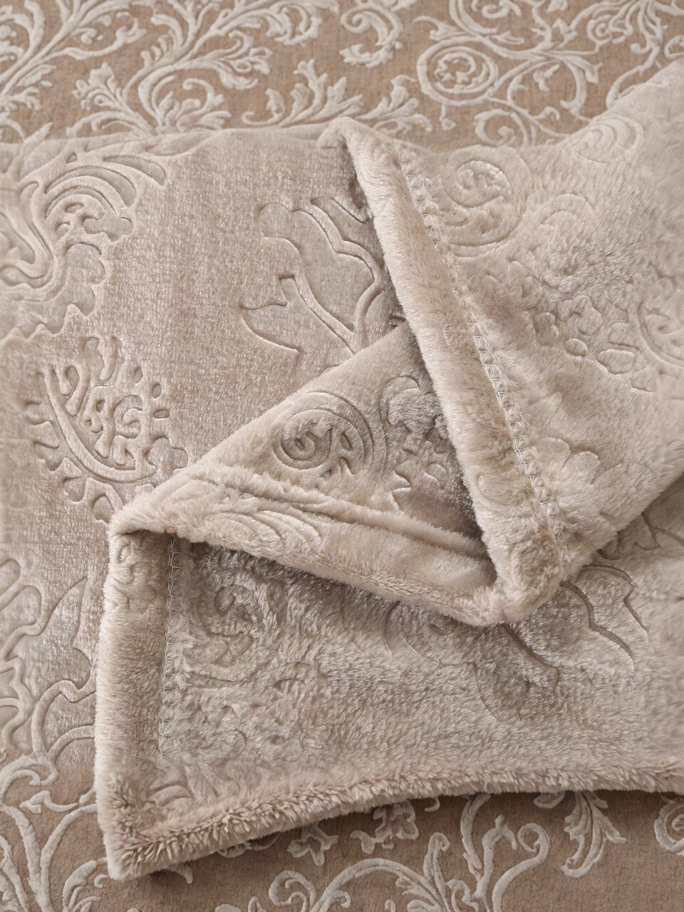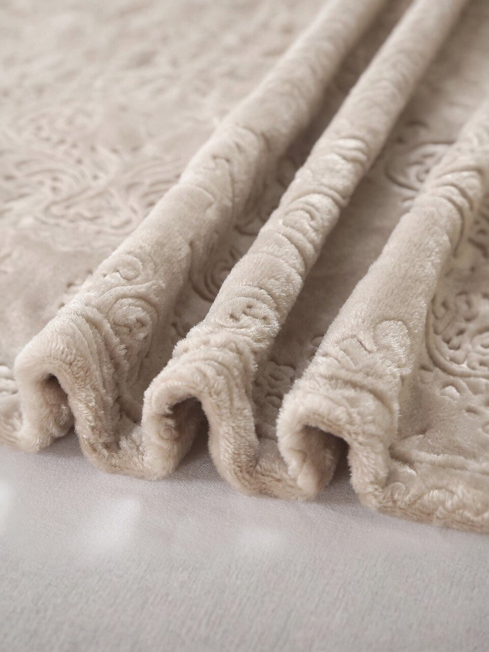 Часто спрашивают, чем отличается этот плед от других: плотность 270 г/м² гарантирует тепло без излишней тяжести, а однотонный бежевый цвет с деликатным узором делает его универсальным для любого стиля. Подходит ли для дачи или на подарок? Да — он легкий, компактно складывается, не требует особого ухода, выдерживает стирку при 30-40°С. Используйте как покрывало, уютный плед для отдыха или стильный аксессуар в интерьере.