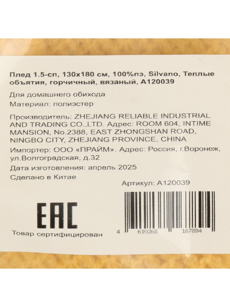 Вы можете приобрести «Плед 1.5-спальный, 130х180 см, вязаный, 100% полиэстер, Silvano, Теплые объятия, горчичный, однотонный, A120039» и другие товары в нашем интернет-магазине в Орле по низким ценам и с бесплатным самовывозом.