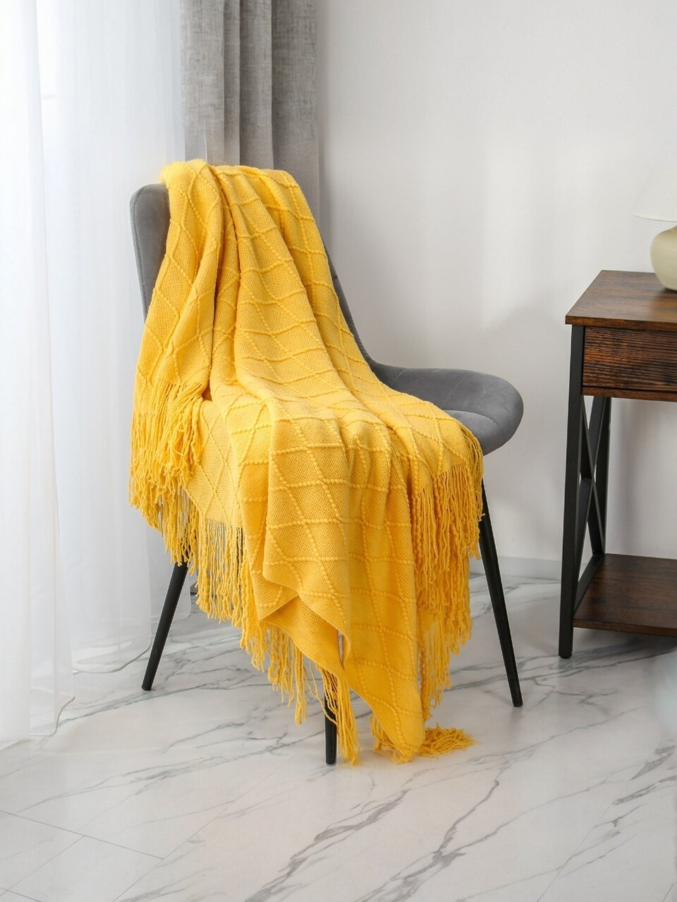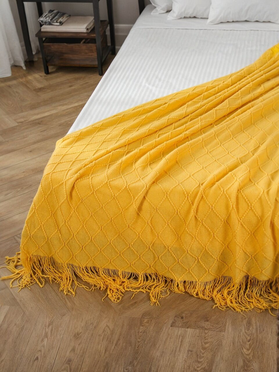 Плед 1.5-спальный Silvano «Теплые объятия» — это современное решение для тех, кто ищет недорогой и стильный плед для дома или дачи. Благодаря однотонному горчичному цвету и вязаной фактуре, он гармонично впишется в любой интерьер, а отделка бахромой добавит уюта. Если вы спрашиваете, какой плед выбрать для гостиной или спальни, обратите внимание на сочетание мягкости и легкости этого изделия — полиэстер обеспечивает приятную на ощупь поверхность без ворса и сохраняет тепло даже в прохладное время года.