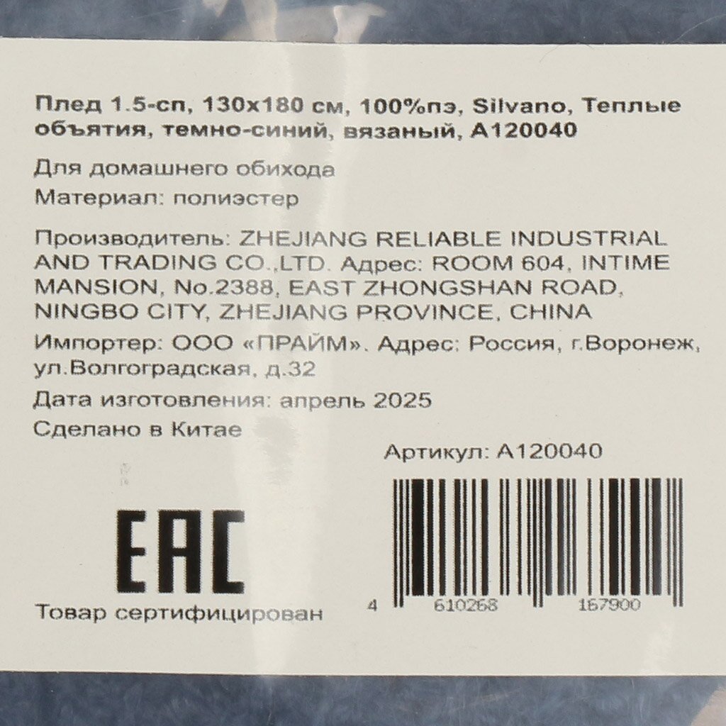 Вы можете приобрести «Плед 1.5-сп, 130х180 см, 100%пэ, Silvano, Теплые объятия, темно-синий, вязаный, A120040» и другие товары в нашем интернет-магазине в Брянске по низким ценам и с бесплатным самовывозом.