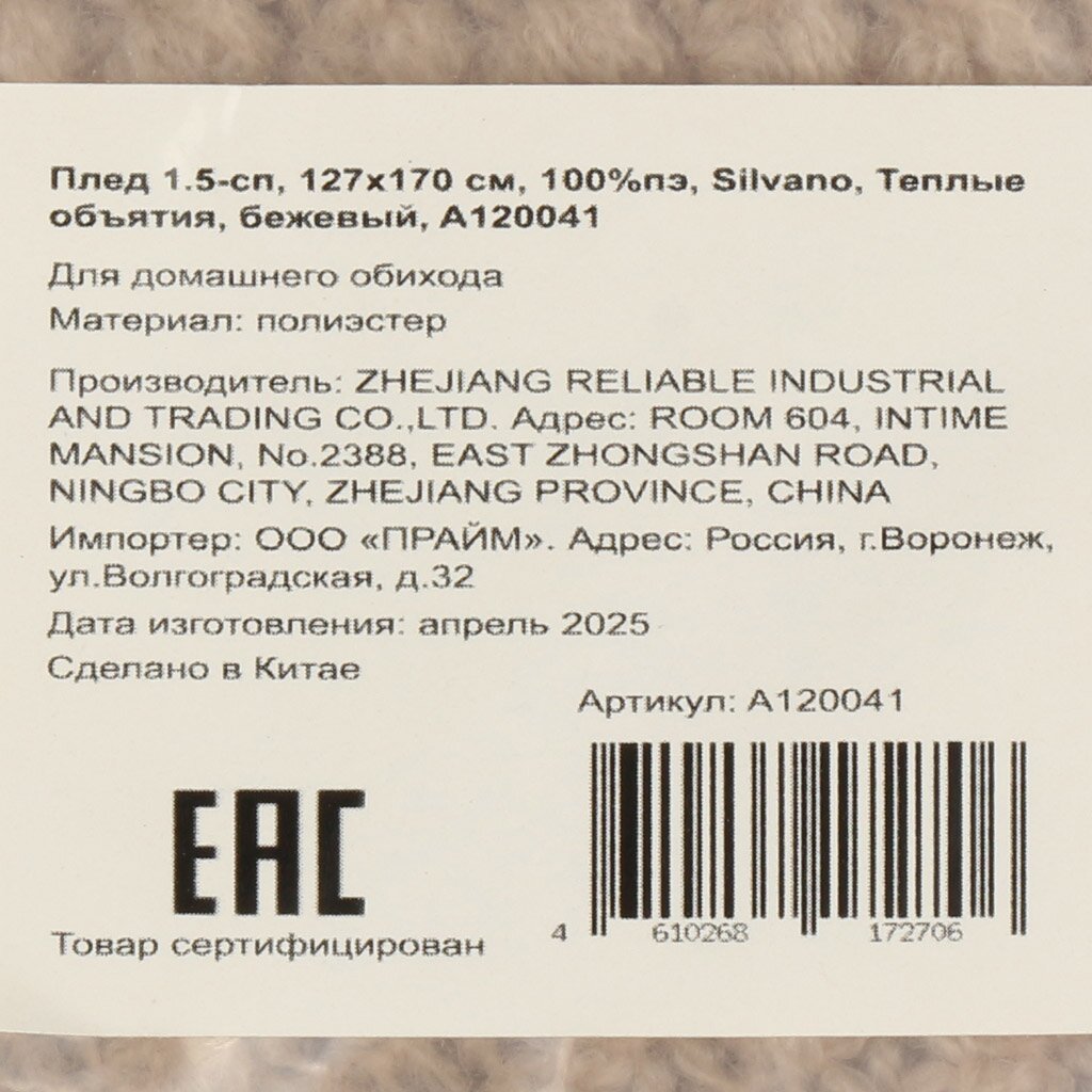 Плед Silvano «Теплые объятия» 1.5-спальный 127х170 см: уют и тепло для дома и дачи по выгодной цене — универсальный выбор для подарка и комфорта.
