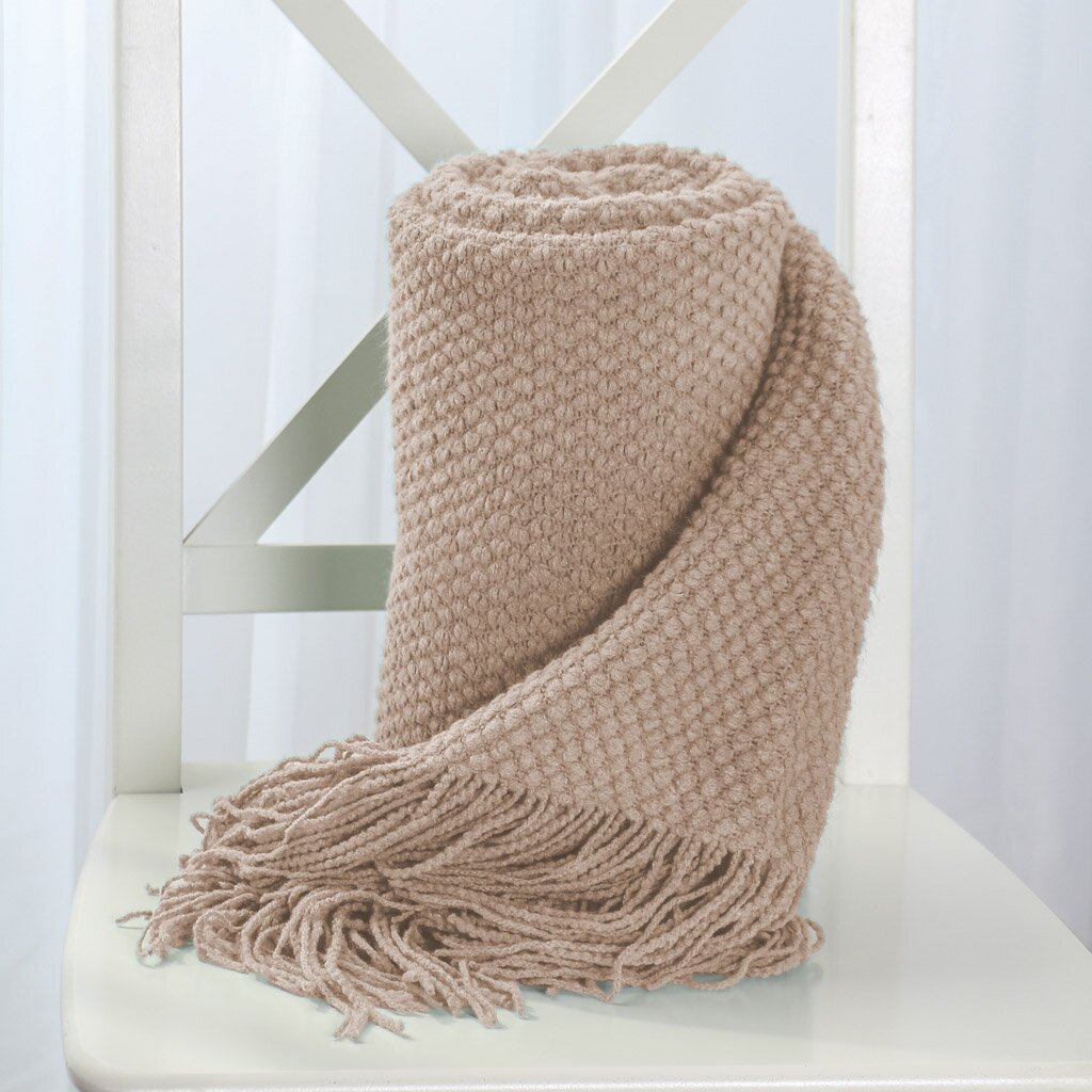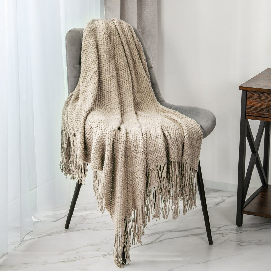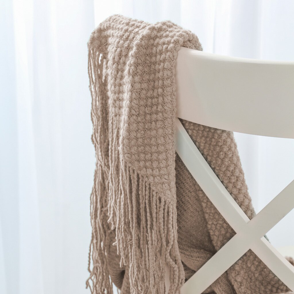 - Вязаный плед с эффектом «теплых объятий» — мягкость и уют в каждом прикосновении.