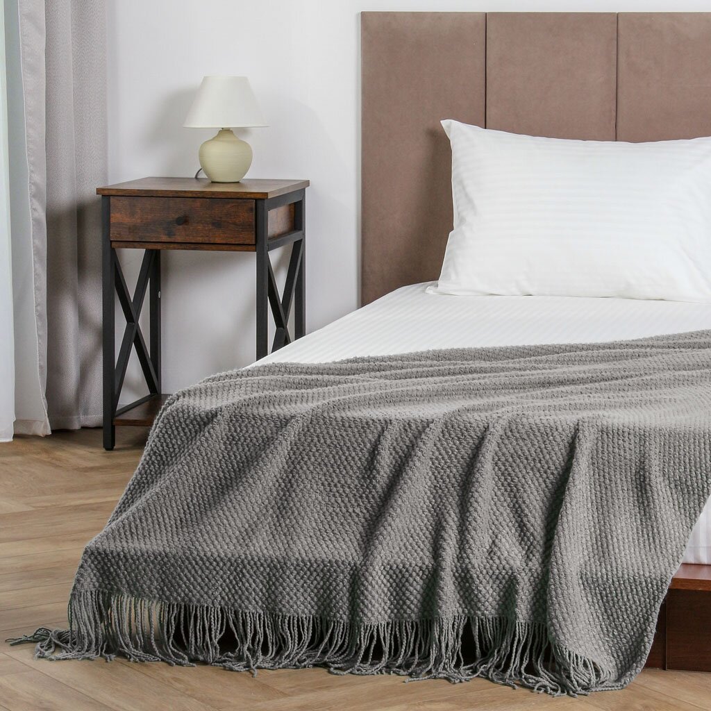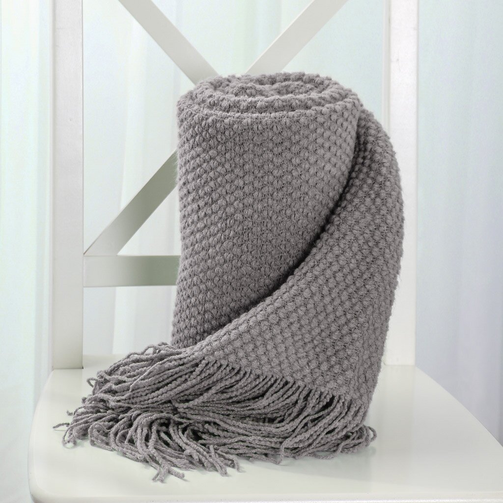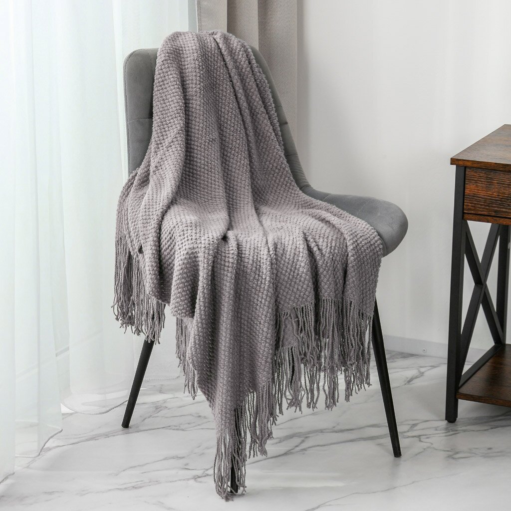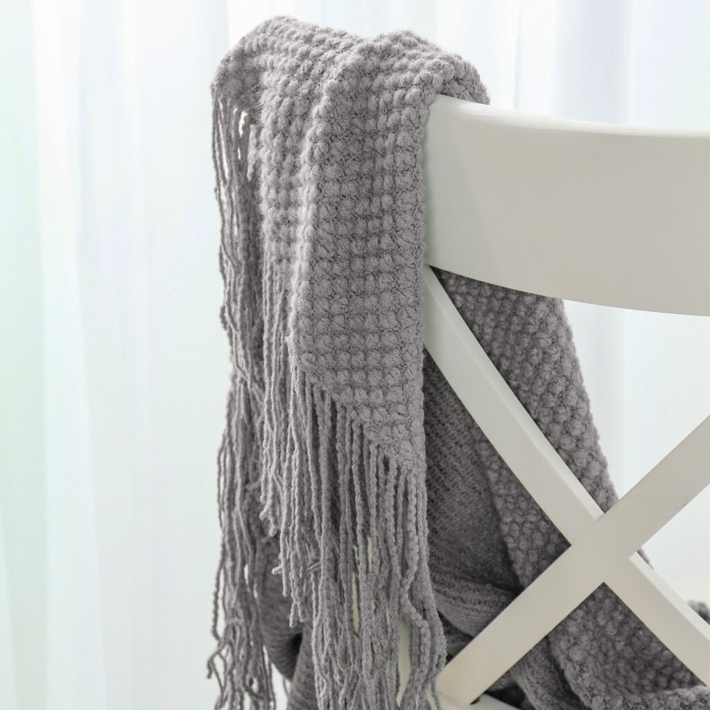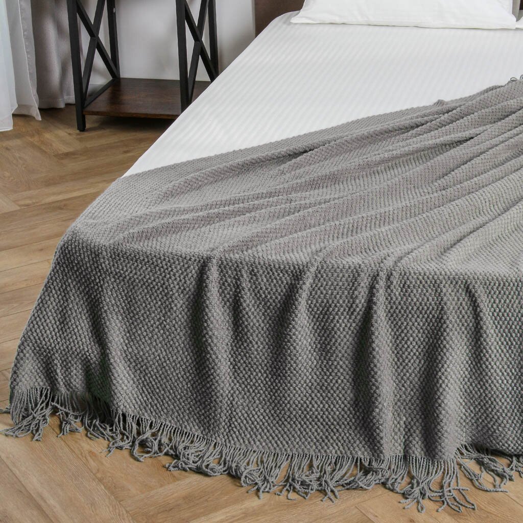 - Эксклюзивный дизайн: вязаный плед с бахромой добавляет уюта и стиля в любой интерьер.