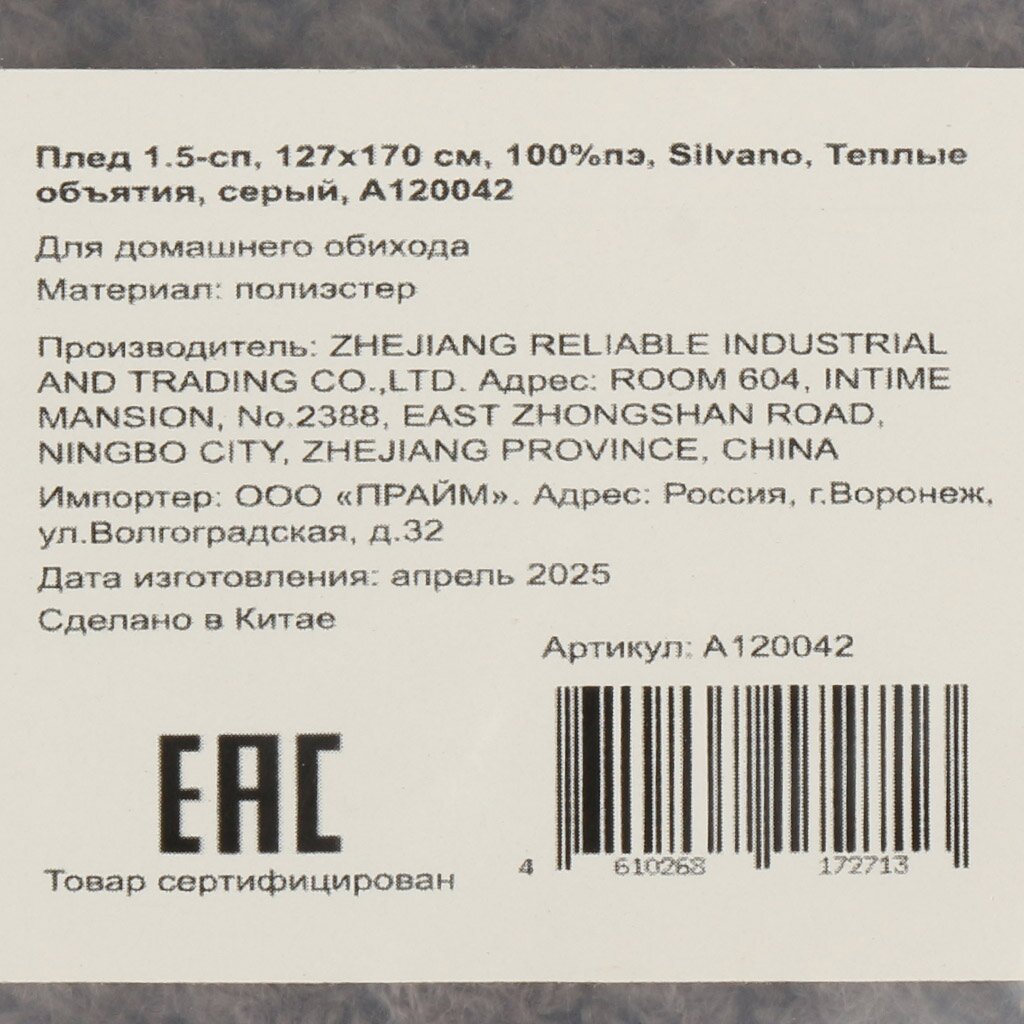 Плед 1.5-спальный Silvano "Теплые объятия", 127х170 см, серый: уют и тепло дома по доступной цене — идеальный выбор для дачи, дивана или подарка.