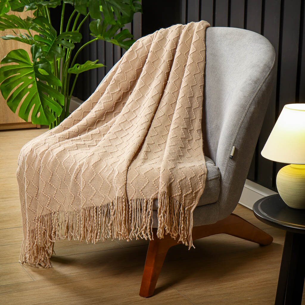 Плед 1.5-спальный, 130х170 см, 100% полиэстер, Silvano, Теплые объятия ромбы, светло-бежевый, вязаный, TB1317-52