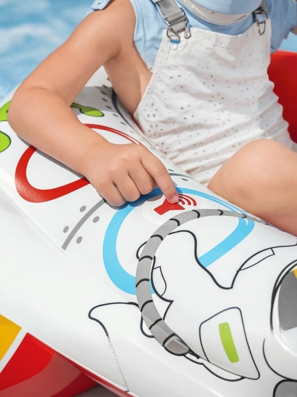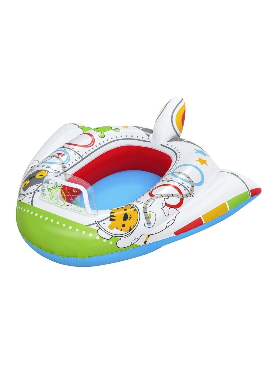 - Яркий и красочный дизайн точно понравятся Вашему малышу. А Вам будет хорошо видно лодку с берега или бортика бассейна.