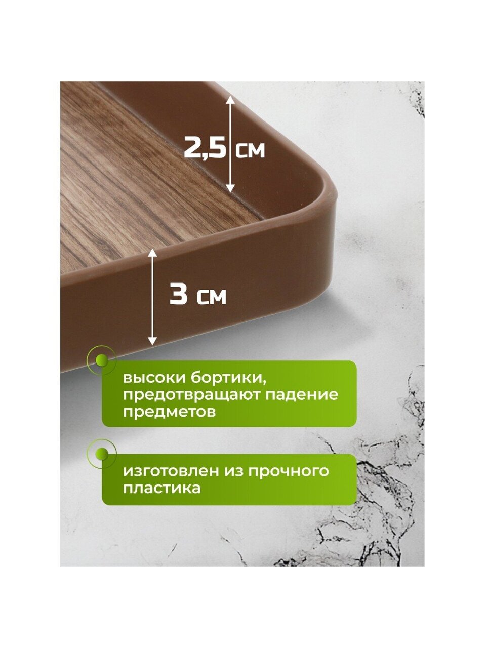 - Высота борта с внутренней части: 2.5 см.