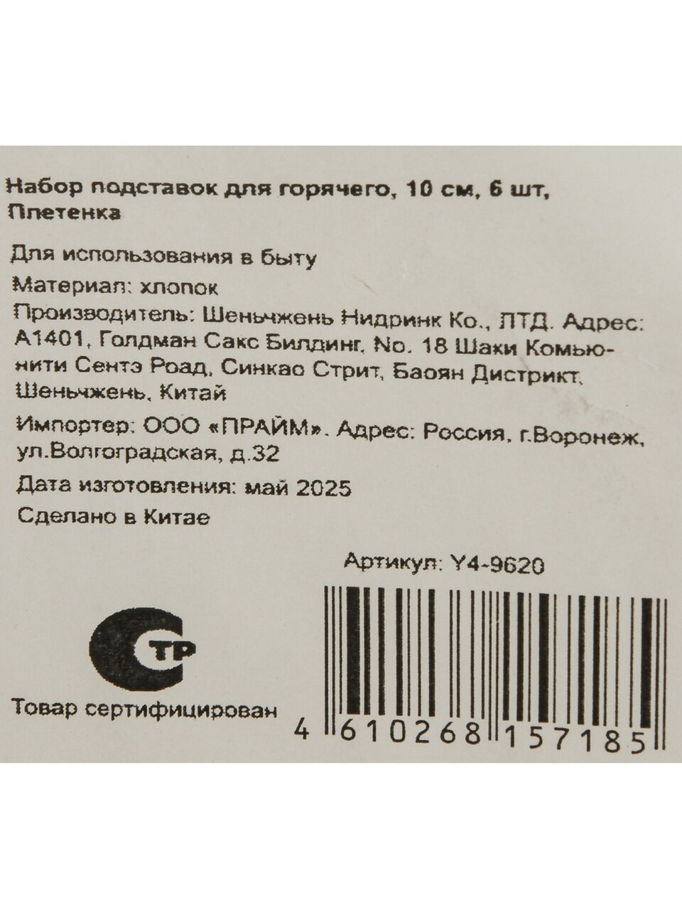 Набор подставок для горячего, 10 см, 6 шт,Плетенка, Daniks, Y4-9620