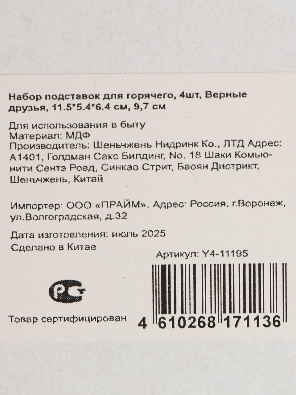 Вы можете приобрести «Набор подставок для горячего, дерево, 4 шт, круглый, 11.5х5.4х6.4 см, Верные друзья, Y4-11195» и другие товары в нашем интернет-магазине в Серпухове по низким ценам и с бесплатным самовывозом.