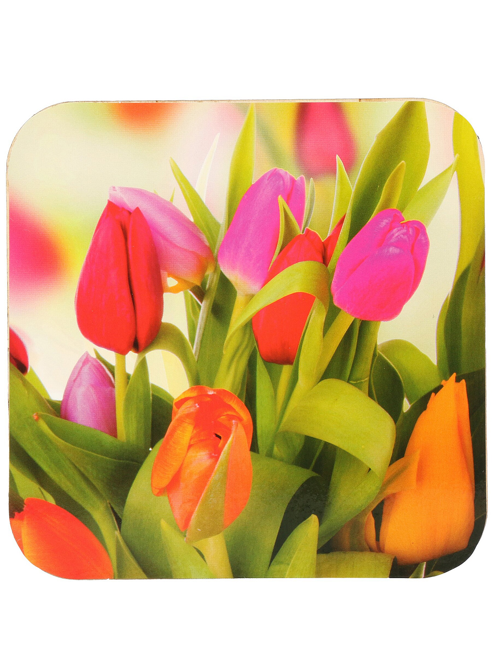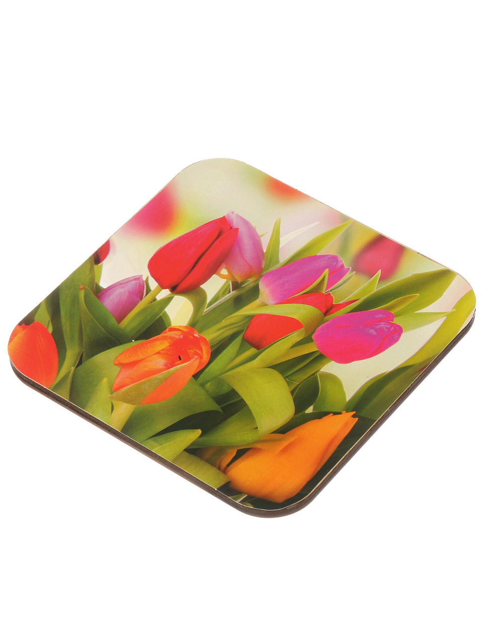 Размер 14.5х14.5 см, толщина 8 мм, материал — дерево, настольный вид, коллекция «Тюльпаны», 1 штука в наборе.