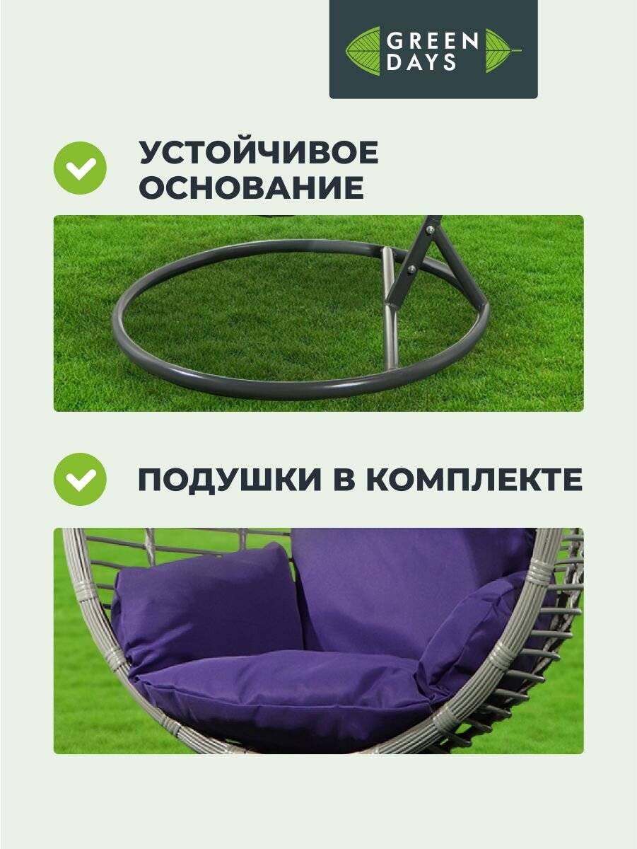 Вы можете приобрести «Качели садовые Кокон, 1-мест, 65х105х198 см, 150 кг, Green Days, темно-серые, ротанг, подушка фиолетовая, TZF-H056-18-3712» и другие товары в нашем интернет-магазине в Смоленске по низким ценам и с бесплатным самовывозом.