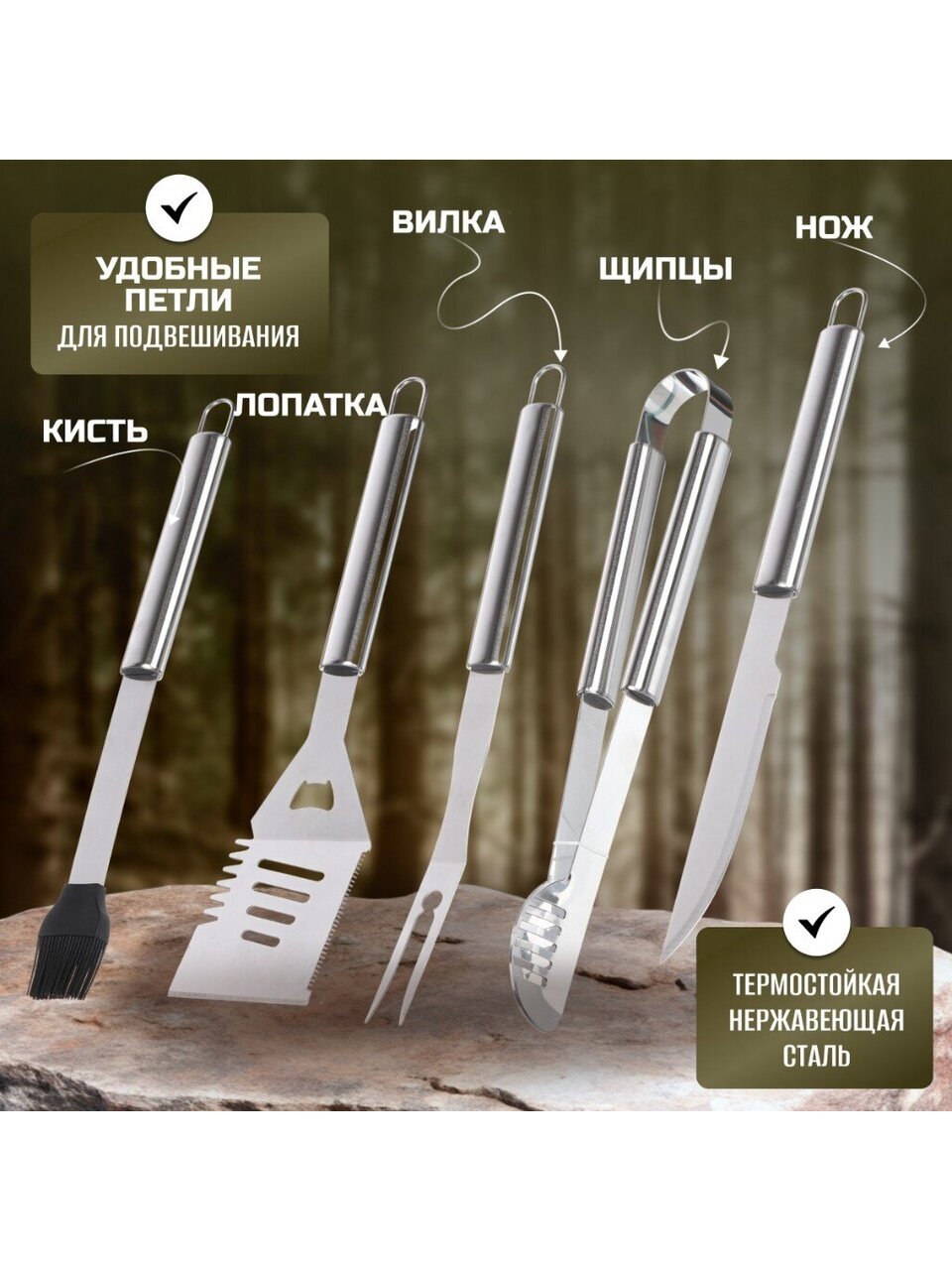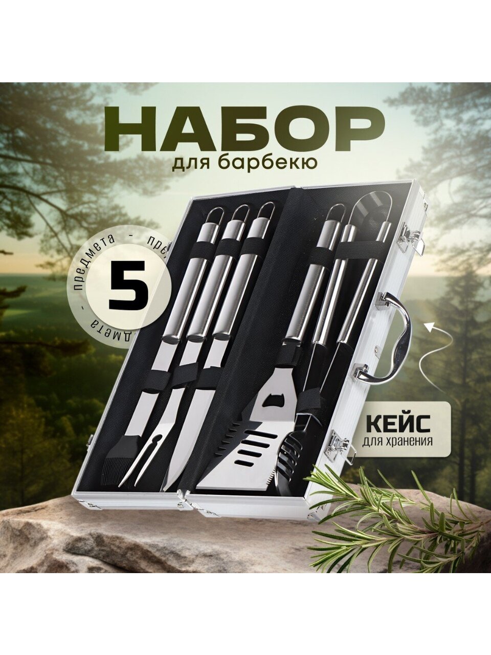 Вы можете приобрести «Набор для барбекю костровой, нержавеющая сталь, 5 предметов, лопатка, щипцы, вилка, нож, кисточка, кейс, C030006» и другие товары в нашем интернет-магазине в Санкт-Петербургe по низким ценам и с бесплатным самовывозом.