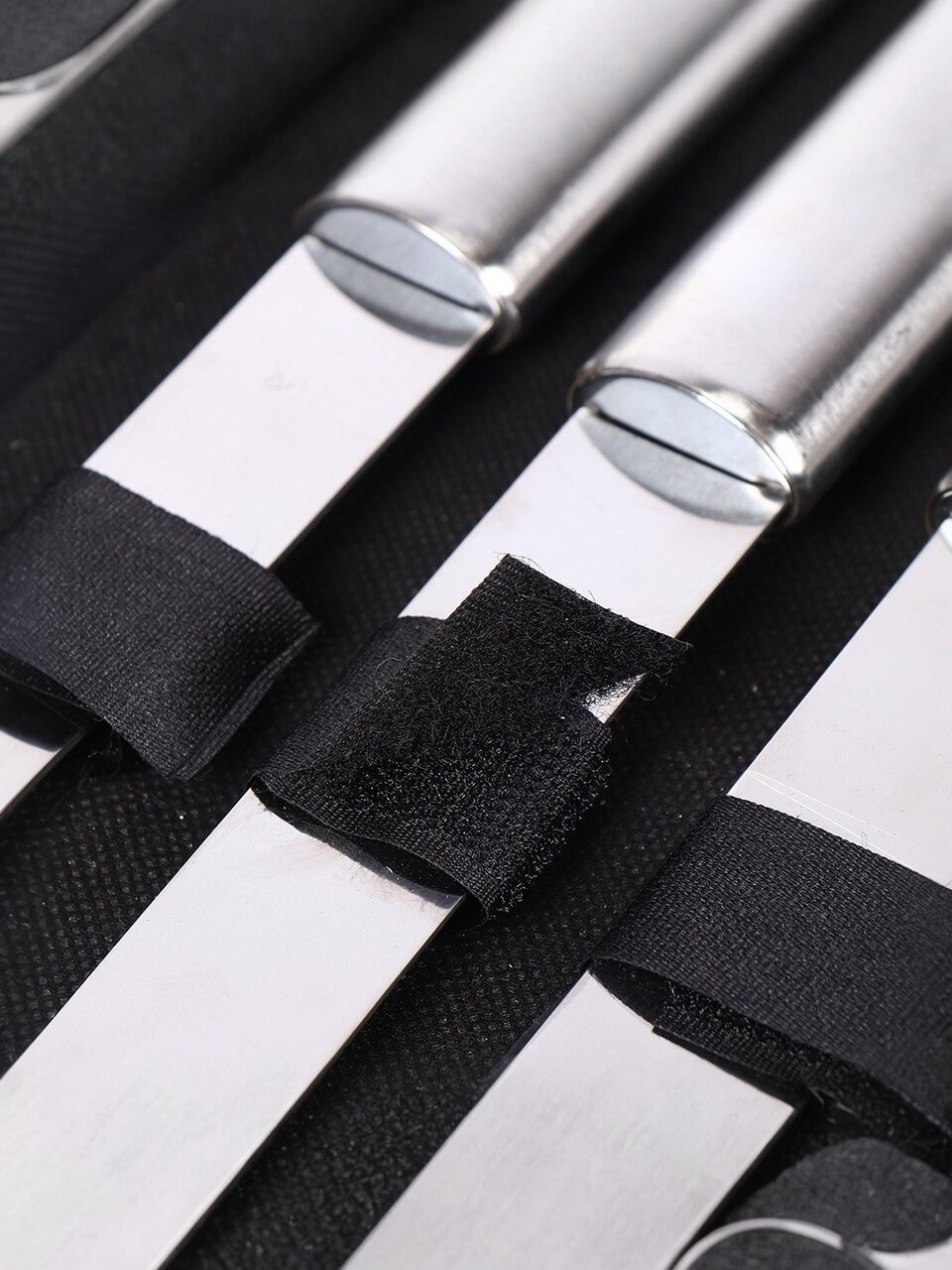 Набор для барбекю обеспечит удобство и безопасность во время отдыха на природе. Благодаря длинным ручкам вы сможете уверенно работать с продуктами на огне, предотвращая ожоги. Компактный чехол легко поместится в кухонном шкафу или в багажнике вашего автомобиля, сохраняя порядок и организованность.