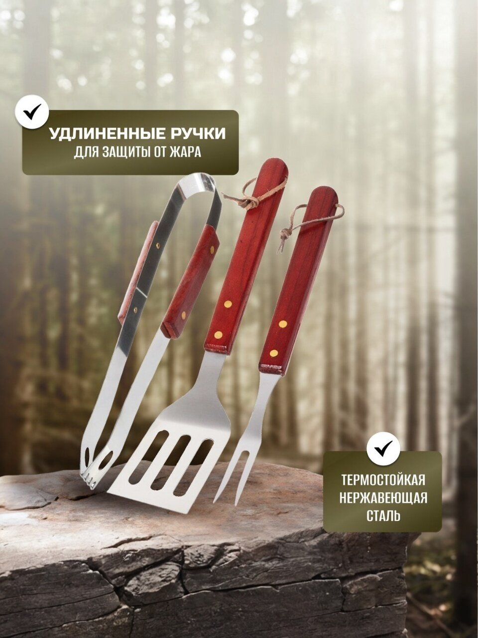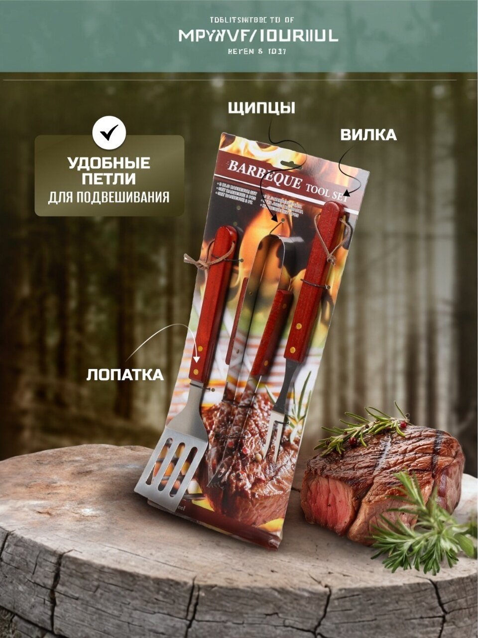 - Состав набора: лопатка, щипцы, вилка для гриля.