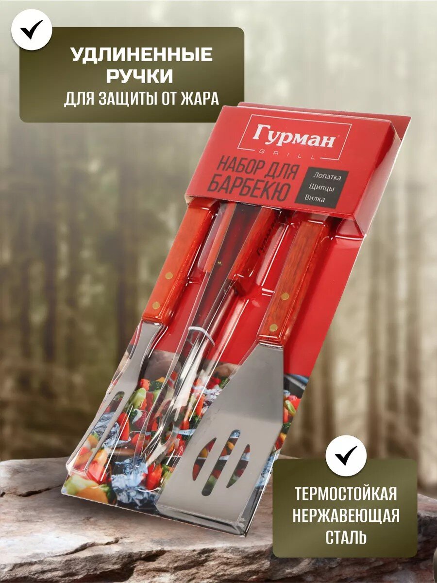 Вы можете приобрести «Набор для барбекю костровой, нержавеющая сталь, 3 предмета, лопатка 38см, щипцы 36см, вилка 36.5см, Гурман, CB003» и другие товары в нашем интернет-магазине в Железногорске по низким ценам и с бесплатным самовывозом.