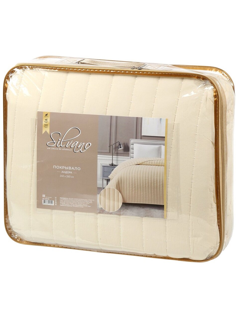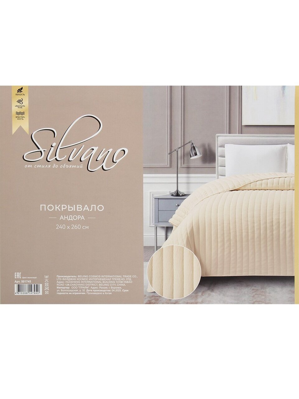 Покрывало евро Silvano Андора 240х260 см молочного цвета — стильное решение для спальни и гостиной: долговечный полиэстер, универсальный размер, уют и чистота без лишних хлопот.