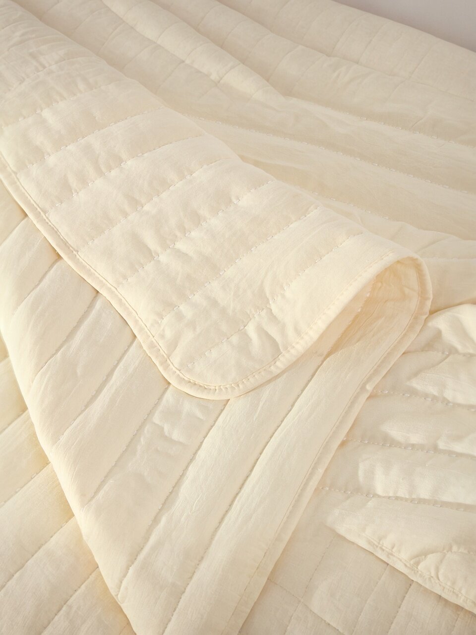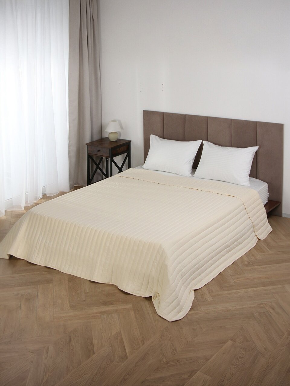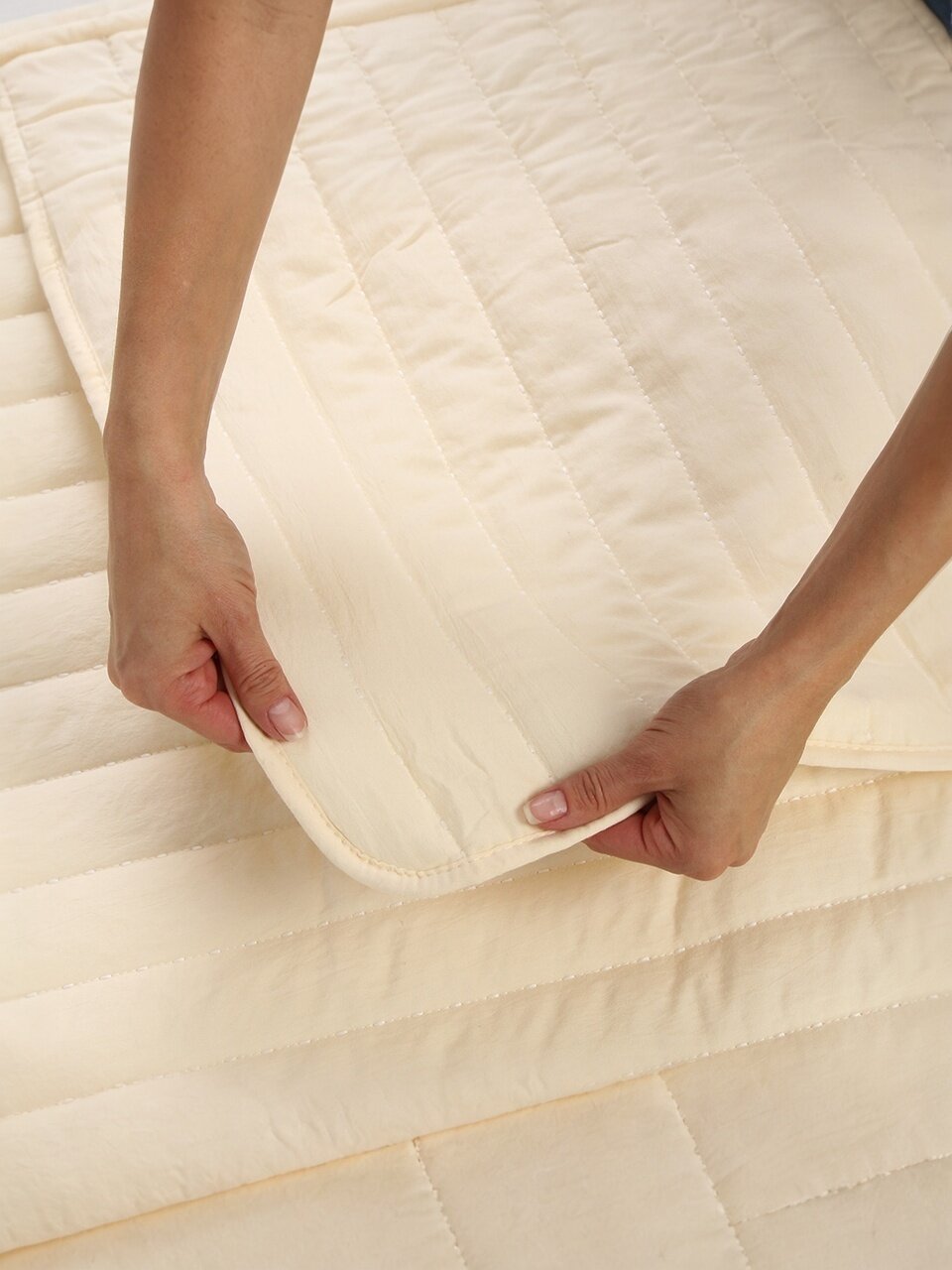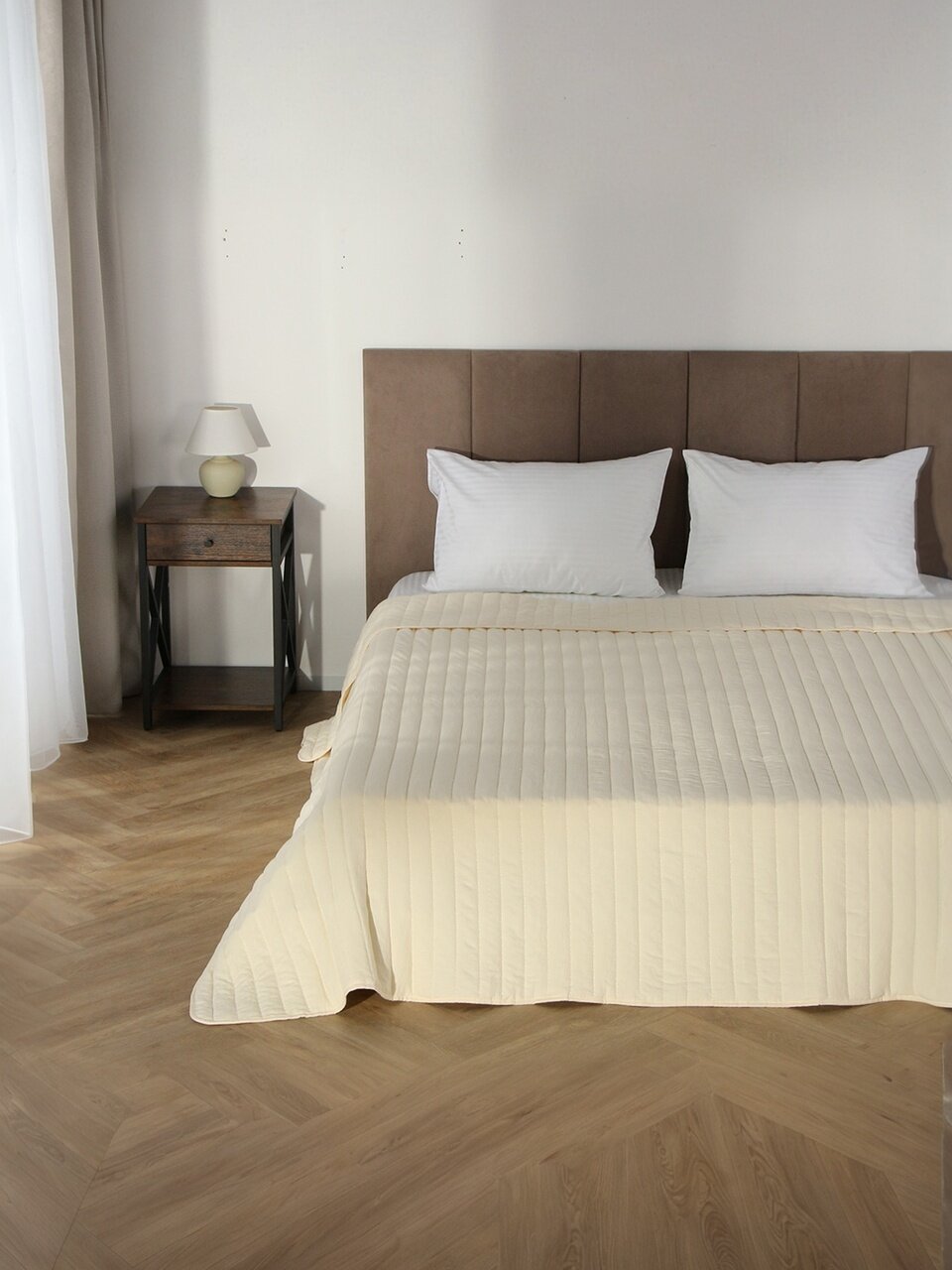 Покрывало однотонное, стёганое, выполнено в стиле минимализм, не двустороннее, износостойкое, не требует специального ухода, цвет — молочный.