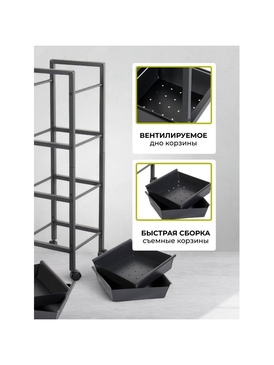 Многофункциональность этажерки позволяет использовать ее в прихожей, ванной, кухне, гостиной или на балконе. Стильное исполнение подчеркнет индивидуальность любого пространства, а прочность металла гарантирует долгий срок службы даже при интенсивной эксплуатации. Продукт идеально подходит для организации порядка и экономии пространства, что особенно актуально для небольших помещений.