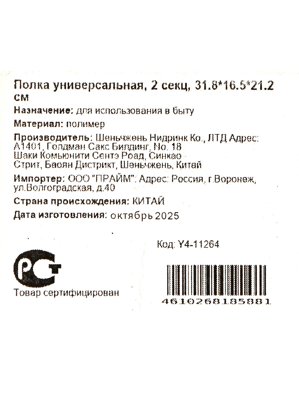 Оформите заказ на универсальную пластиковую полку Y4-11264 прямо сейчас — получите функциональное решение для хранения по выгодной цене с быстрой доставкой.