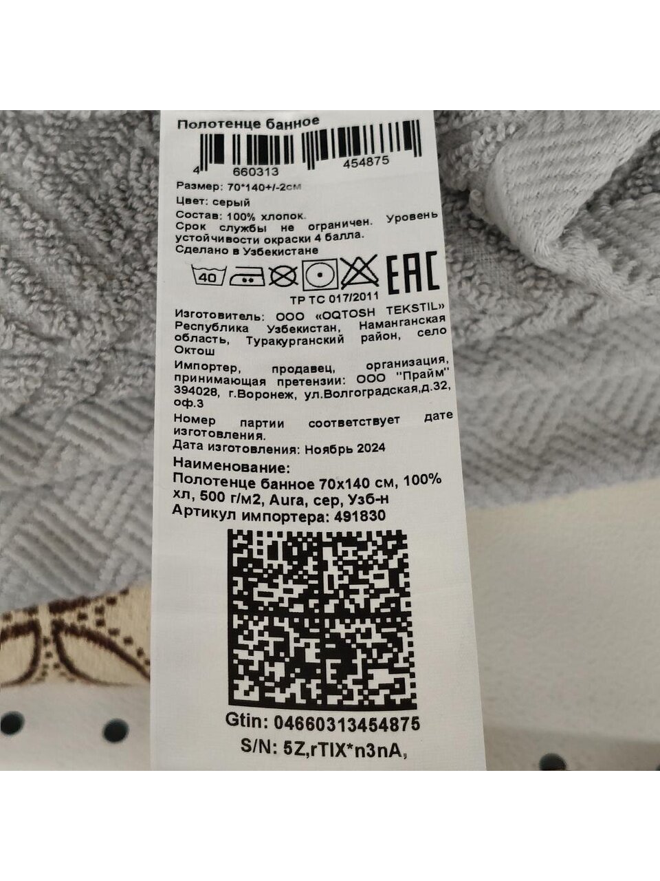 Покупка этого полотенца принесет выгоду в виде долговременного использования и экономии средств на частую замену текстиля. Высокое качество материала гарантирует приятные ощущения при каждом использовании, а стильный серый цвет добавит изысканности в интерьер ванной комнаты. Полотенце от бренда "Аура" из Узбекистана станет надежным помощником в уходе за собой, обеспечивая комфорт и уют после каждого принятия водных процедур.