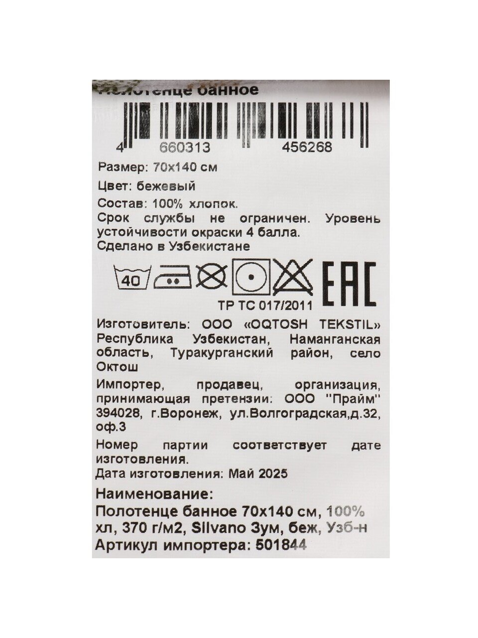 Вы можете приобрести «Полотенце банное 70х140 см, 100% хлопок, 370 г/м2, Зум, Silvano, бежевое, Узбекистан» и другие товары в нашем интернет-магазине в Астрахани по низким ценам и с бесплатным самовывозом.