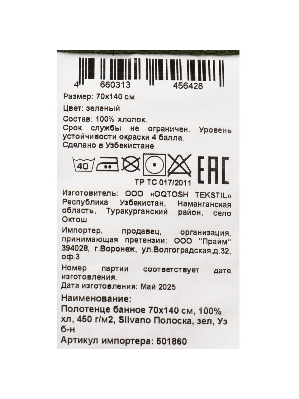 Вы можете приобрести «Полотенце банное 70х140 см, 100% хлопок, 450 г/м2, Полоска, Silvano, зеленое, Узбекистан» и другие товары в нашем интернет-магазине в Белгороде по низким ценам и с бесплатным самовывозом.