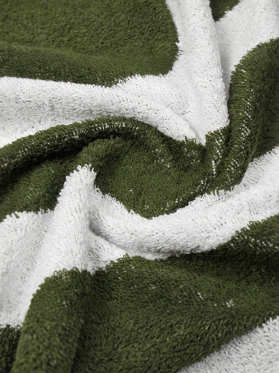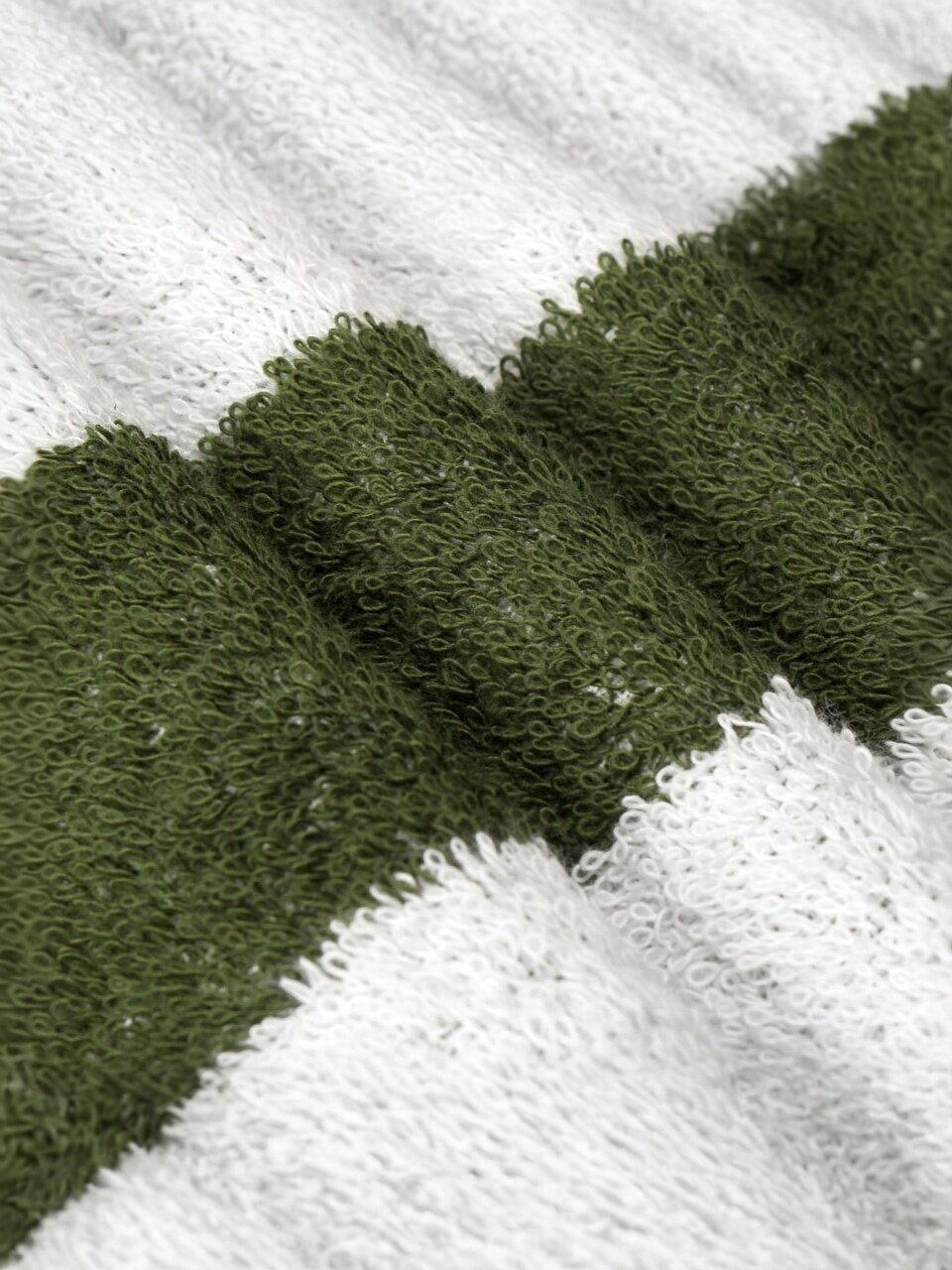 В отличие от синтетических аналогов, хлопковое полотенце лучше удерживает тепло и обеспечивает приятные тактильные ощущения. Вопрос «Подходит ли полотенце для дачи или тренажёрного зала?» — да, благодаря прочности и универсальному размеру оно идеально для любых условий. Дизайн в полоску и насыщенный зелёный цвет делают его стильным дополнением к любому интерьеру ванной или сауны.