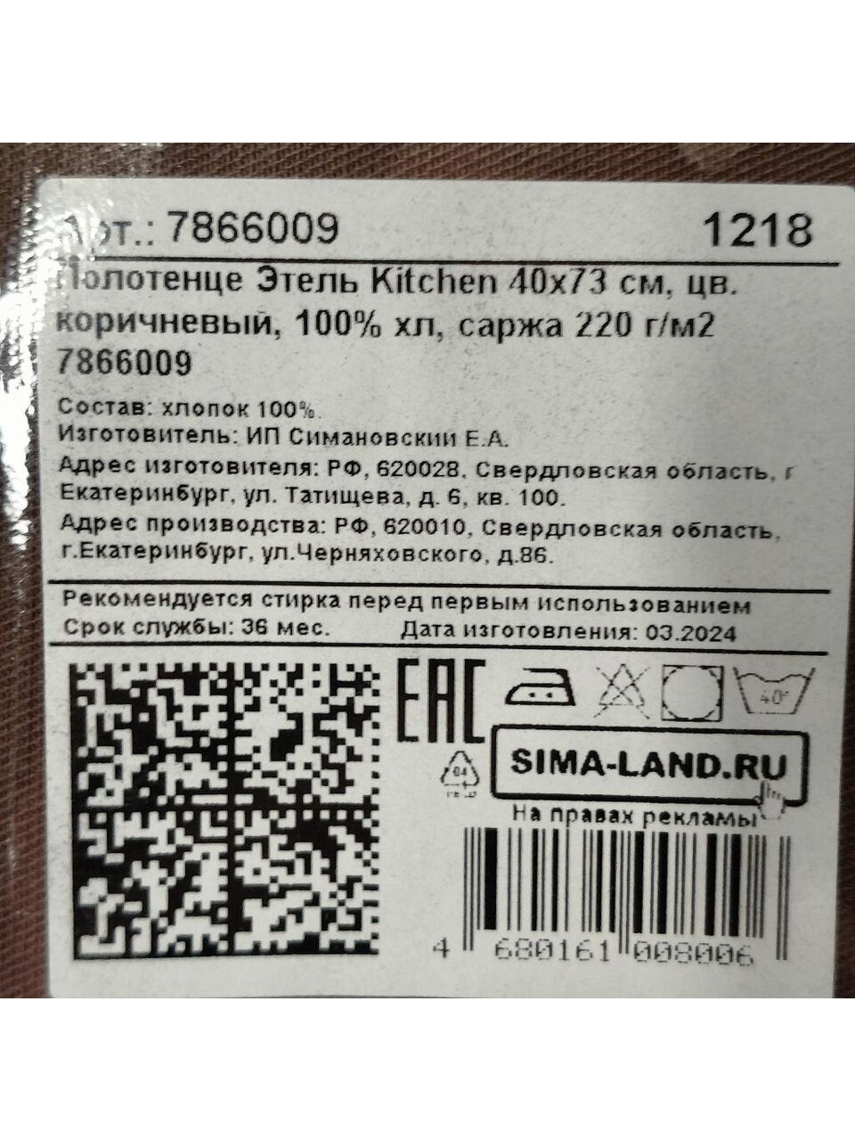 Вы можете приобрести «Полотенце кухонное 40х73 см, 220 г/м2, 100% хлопок, саржа, Этель, Kitchen, коричневое, Россия» и другие товары в нашем интернет-магазине в Серпухове по низким ценам и с бесплатным самовывозом.