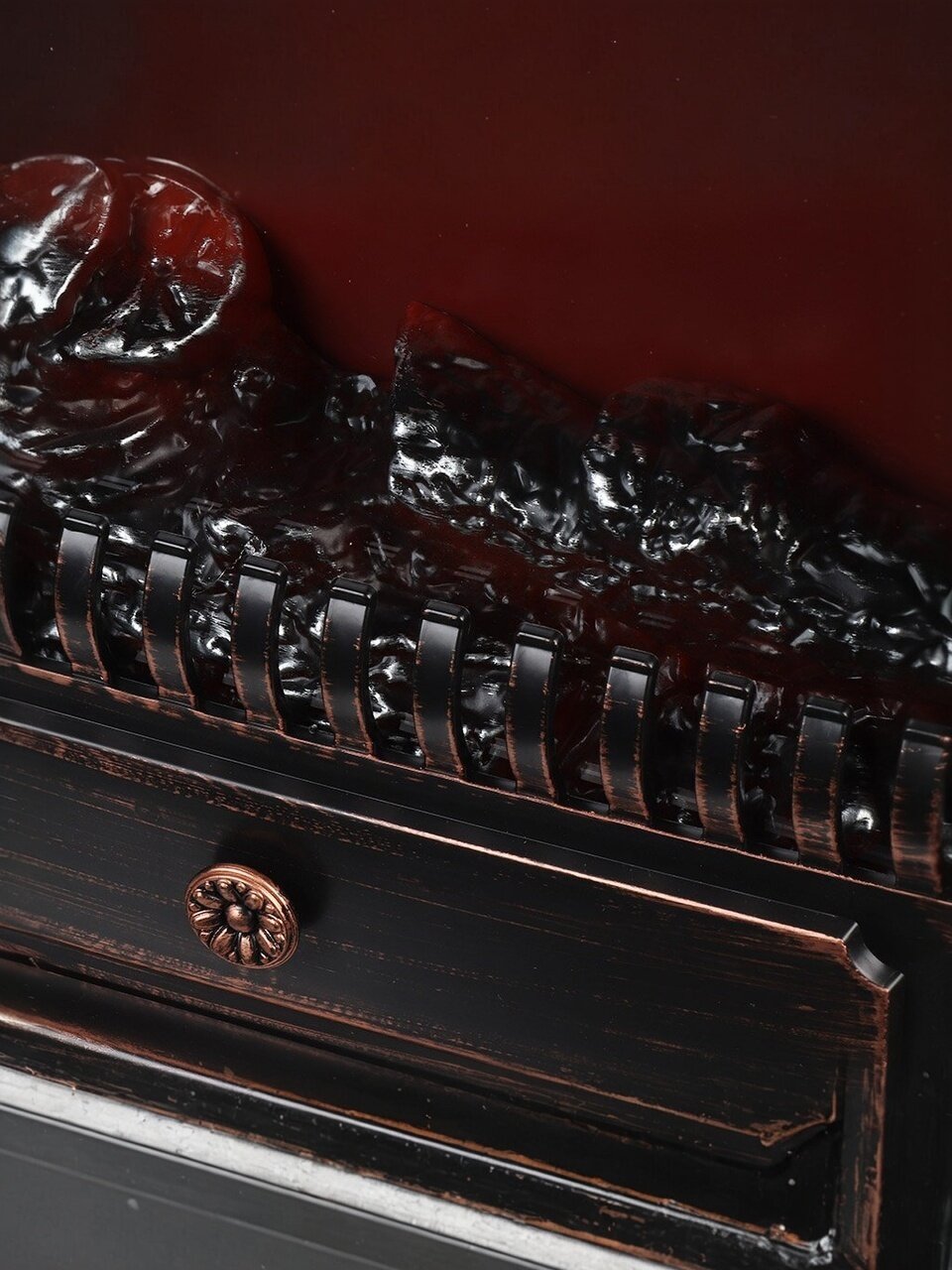 - Композиция из медленно “тлеющих” поленьев освещается экономичными и безопасными светодиодами, имитирующими настоящее пламя. Благодаря этому декоративный камин не нагревается и не выделяет дым.