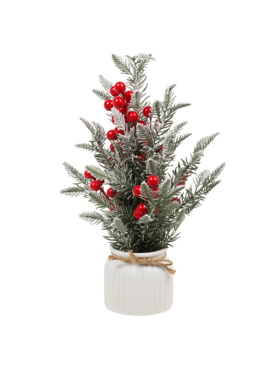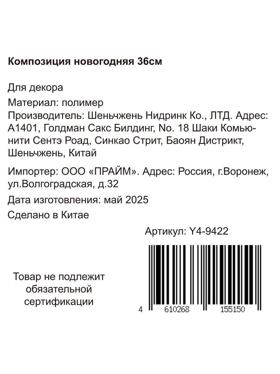 Высота изделия 36 см позволяет использовать композицию как самостоятельное украшение или часть новогодней инсталляции. Благодаря литью, хвоя выглядит максимально натурально и сохраняет форму долгое время. Заснеженный эффект и декоративные ягоды придают изделию особую выразительность, делая его центром внимания среди других украшений. Композиция не требует ухода, не осыпается, не теряет привлекательности на протяжении всего праздничного сезона.