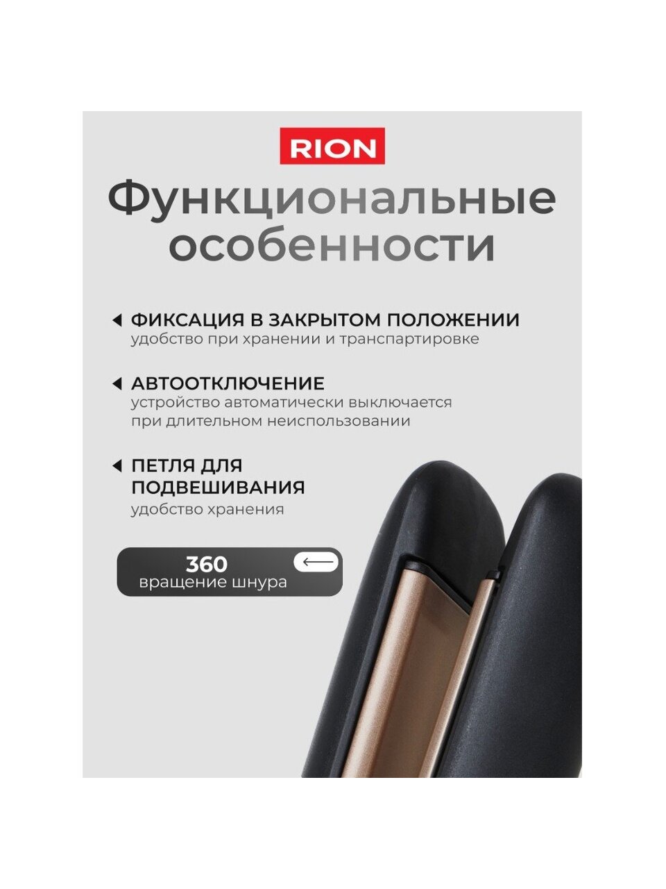 Выпрямитель Rion TA-2706 – это сочетание качества, удобства и безопасности, которое оценят даже самые требовательные пользователи. Сделайте шаг навстречу идеальной укладке и приобретите устройство, которое позаботится о ваших волосах.