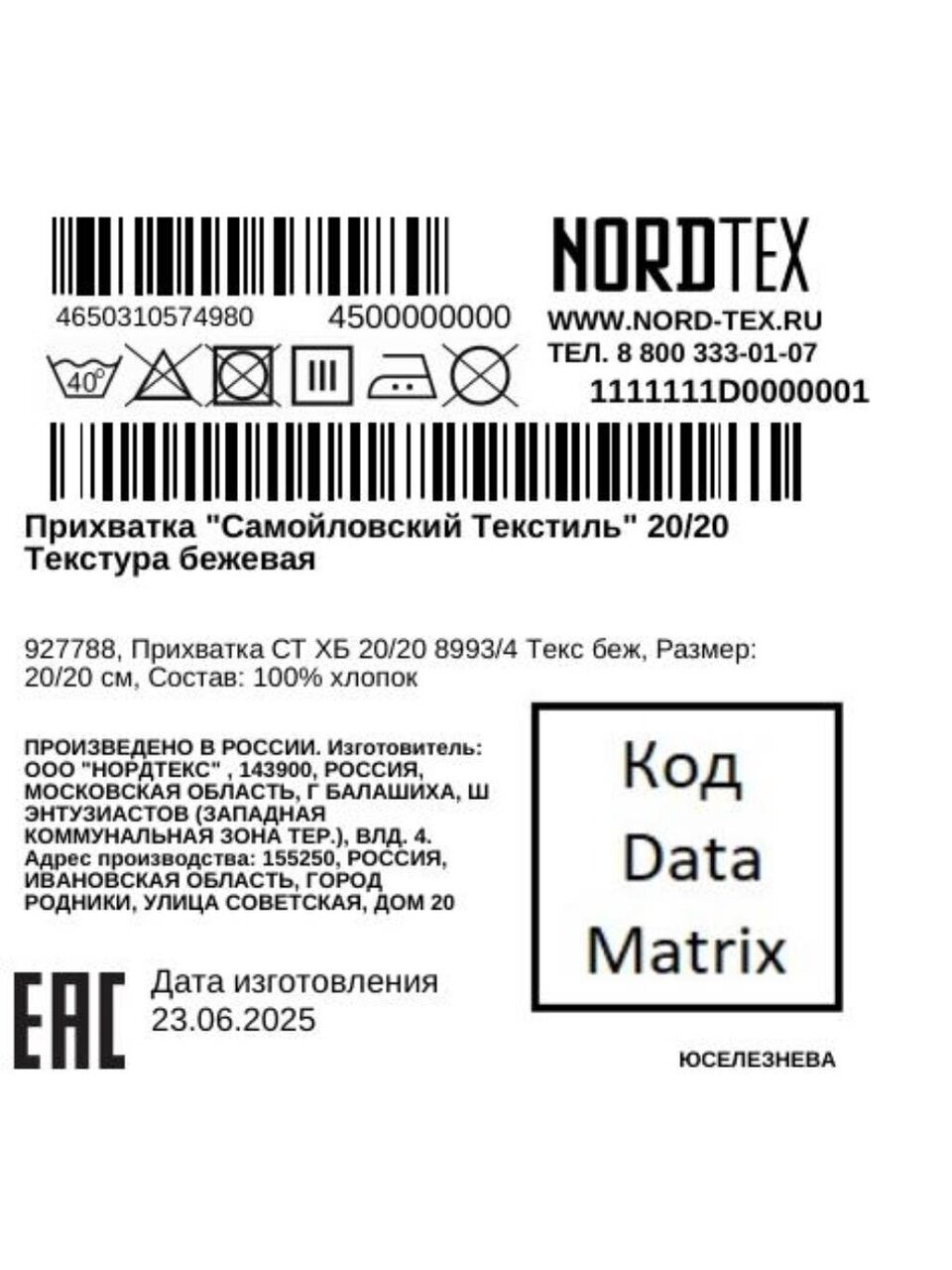 Вы можете приобрести «Прихватка 20х20 см, 100% хлопок, бежевая, Самойловский текстиль, Текстура» и другие товары в нашем интернет-магазине в Орле по низким ценам и с бесплатным самовывозом.