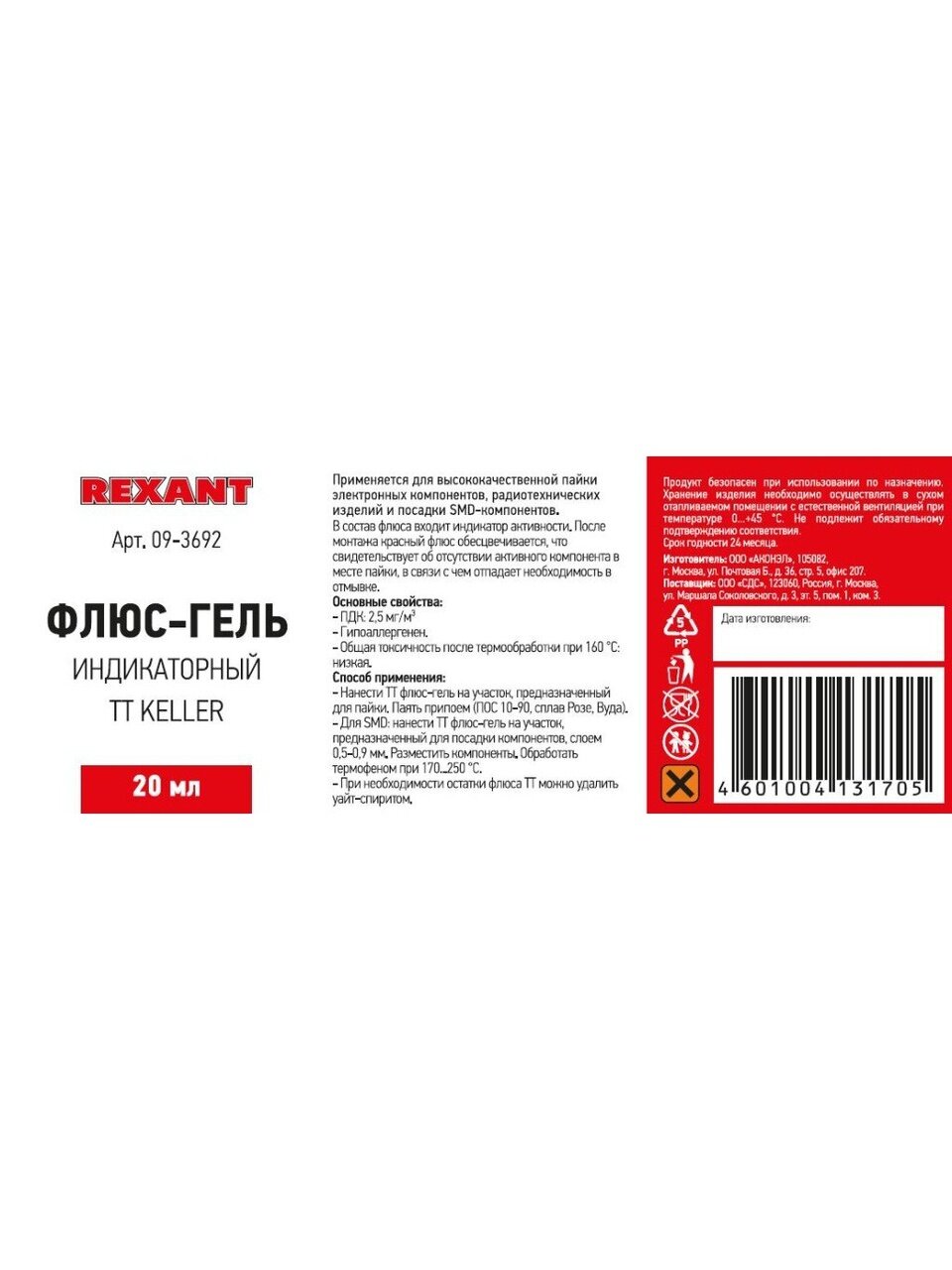 Вы можете приобрести «Флюс-гель для пайки Rexant, TT Keller индикаторный, 20 мл, банка, 09-3692» и другие товары в нашем интернет-магазине в Липецке по низким ценам и с бесплатным самовывозом.