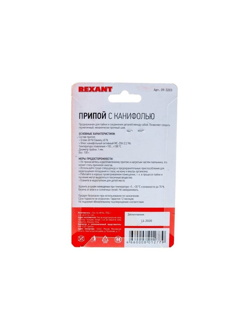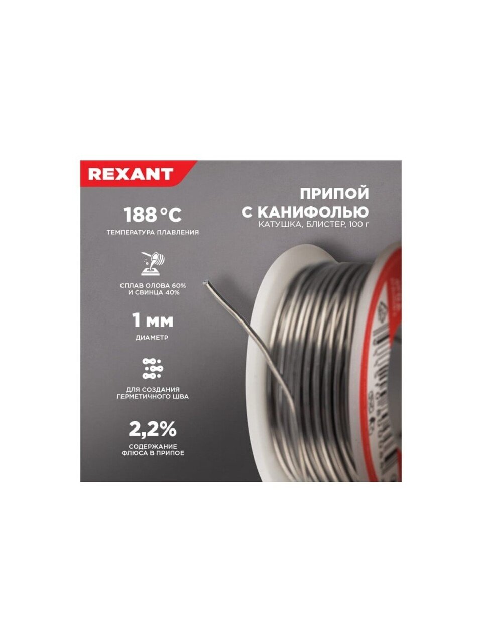 Вы можете приобрести «Припой с канифолью Sn60% Pb40% Flux 2.2%, Rexant, 100 г, диаметр 1 мм, катушка, 09-3203» и другие товары в нашем интернет-магазине в Ставрополе по низким ценам и с бесплатным самовывозом.