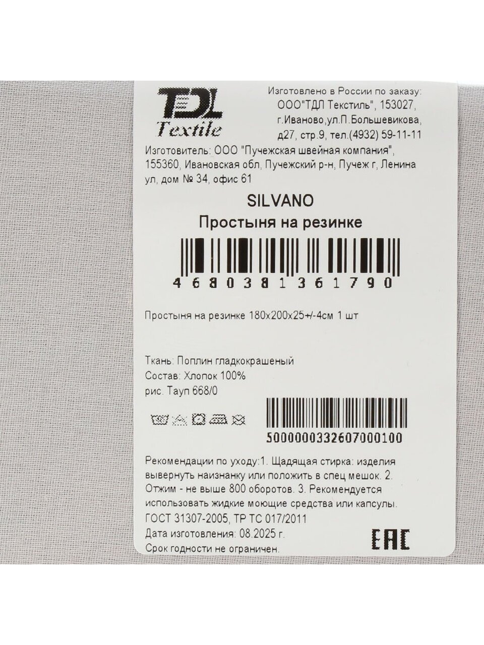 Простыня евро на резинке 180х200х25 см Silvano: 100% хлопок-поплин для комфортного сна, не сползает, идеальна для дома и подарка.