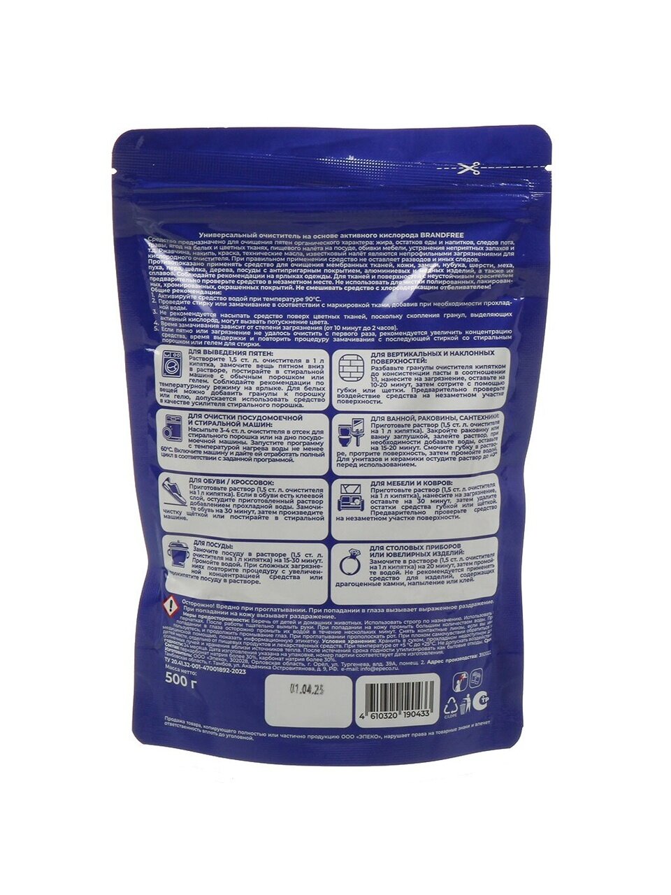 Откройте для себя мощь пятновыводителя Brandfree — универсальное решение для борьбы с пятнами. Порошок на основе кислорода эффективно справляется с загрязнениями, возвращая вещам первозданную чистоту. Идеальный выбор для тех, кто ищет надежное средство для удаления пятен.