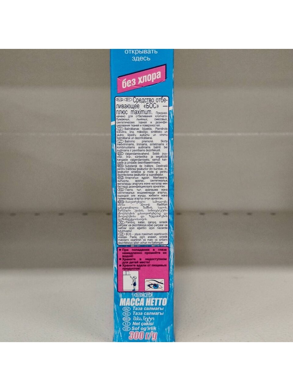 Кислородосодержащий отбеливатель для всех видов тканей "БОС плюс". Рекомендуется для применения с моющими средствами при замачивании, кипячении и машинной стирке. Усиленная формула средства "БОС плюс" с максимальным содержанием активного кислорода специально разработана для отбеливания без кипячения всех видов тканей, включая шерсть и шёлк, при низких температурах (30-50°С). Рекомендуется для занавесок из синтетики.