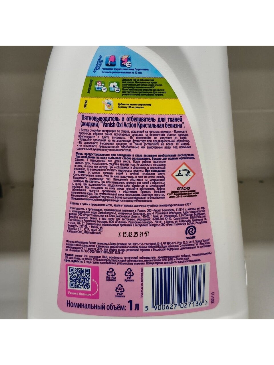 Вы можете приобрести «Пятновыводитель-отбеливатель Vanish, OxiAction, 1 л, жидкость, для стирки, кислородный, 8078301» и другие товары в нашем интернет-магазине в Краснодаре по низким ценам и с бесплатным самовывозом.