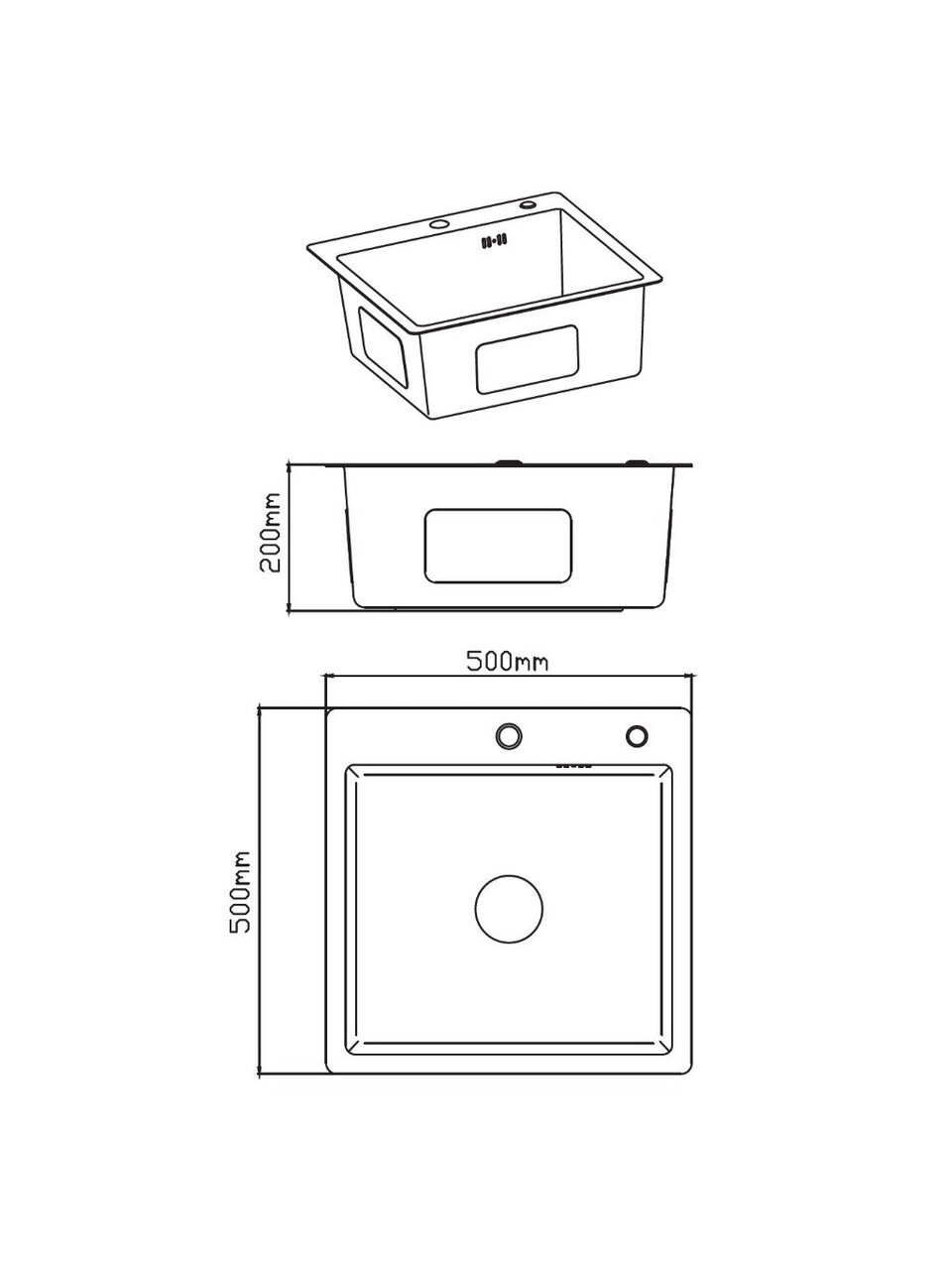 Размер 50х50 см и глубина 20 см позволяют удобно мыть посуду, овощи и фрукты, экономя пространство на кухне. Одна чаша без крыла обеспечивает максимальную вместительность даже на небольшой кухне. Врезной тип монтажа делает установку простой и быстрой, а наличие сифона в комплекте избавляет от необходимости приобретать дополнительные аксессуары. Диаметр сливного отверстия 110 мм подходит для современных систем отвода воды, обеспечивая быструю и эффективную работу мойки.
