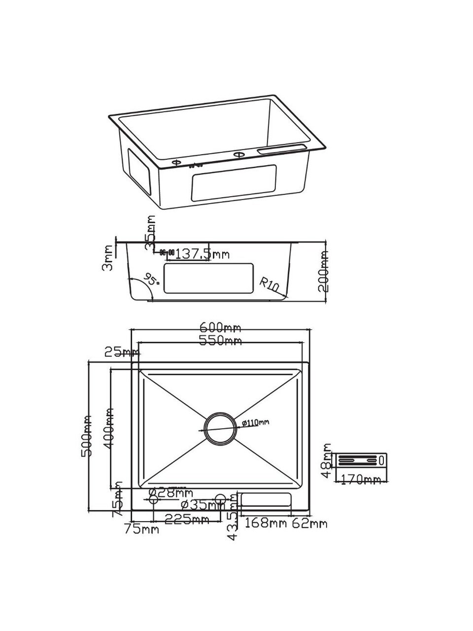 Кухонная мойка врезная с PVD покрытием Diadonna DS5060 — современное решение для стильной и функциональной кухни. Компактные размеры 50х60 см идеально подходят для небольших помещений, а глубина чаши 20 см делает эксплуатацию максимально удобной. Благодаря высококачественной нержавеющей стали с толщиной верха 3 мм и чаши 0.8 мм мойка отличается прочностью, долговечностью и устойчивостью к механическим повреждениям. PVD покрытие обеспечивает дополнительную защиту от коррозии. Прямоугольная форма и лаконичный дизайн позволяют легко сочетать мойку с различными стилями кухонного пространства. Одинарная чаша и наличие отверстия под смеситель делают монтаж быстрым и простым. Сифон в комплекте обеспечивает надежную защиту от неприятных запахов и засоров.