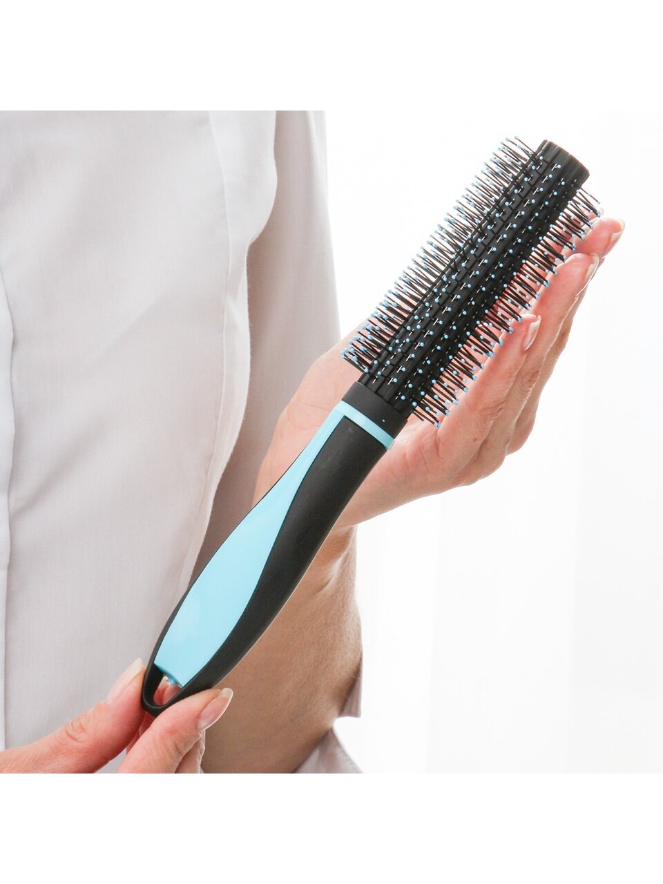 Расческа брашинг 23х4 см черно-голубая A100045 — идеальный инструмент для быстрой укладки и объёма волос дома и в поездках. Универсальный размер, лёгкость и стильный дизайн.